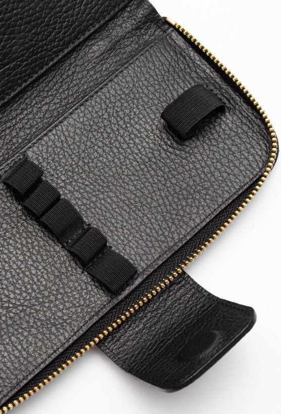Piórnik Margaret wykonany ze skóry naturalnej o groszkowanej fakturze, łączy elegancję z funkcjonalnością. Ma kompaktowe wymiary, zamknięcie na zamek i magnes oraz wnętrze z kieszonkami i gumkami na przybory. Stylowy i praktyczny – idealny do pracy, szkoły i w podróży. Wymiary: 20 x 8 cm