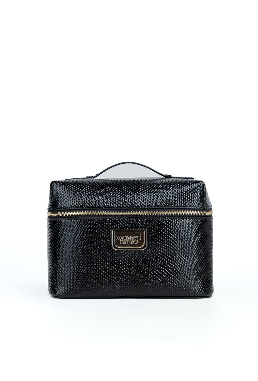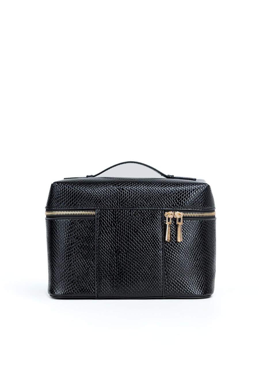 Elegancka kosmetyczka damska w formie kuferka. Wyposażona w praktyczną rączkę u góry oraz zapięcie na suwak, które zapewnia wygodę i bezpieczeństwo. Idealna zarówno na co dzień, jak i w podróży. Wymiary: 28 cm 17 cm x 11 cm