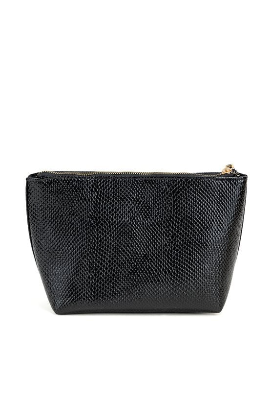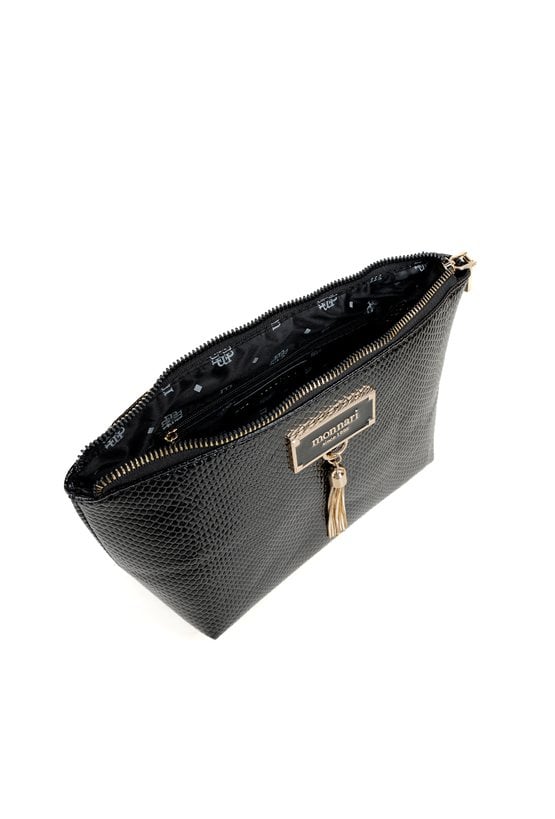 Kosmetyczka damska zdobiona eleganckim wzorem imitującym skórę krokodyla. Przód uzupełnia logowana blaszka z dekoracyjnym złotym chwostem, który dodaje całości wyjątkowego charakteru. Wnętrze wykończone ciemną, logowaną podszewką z kieszonkami na drobiazgi. Idealnie sprawdzi się na prezent jak i do codziennego użytkowania. Wymiary: 27 cm x 16, 5 cm 9 cm.