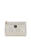 Kosmetyczka damska z praktyczną kieszonką z przodu. Jednokomorowy model z ciemnym, logowanym wnętrzem zapewnia wygodną organizację drobiazgów. Doskonała zarówno do codziennego użytku, jak i jako elegancki prezent. Wymiary: 27 cm x 18 cm x 7 cm.