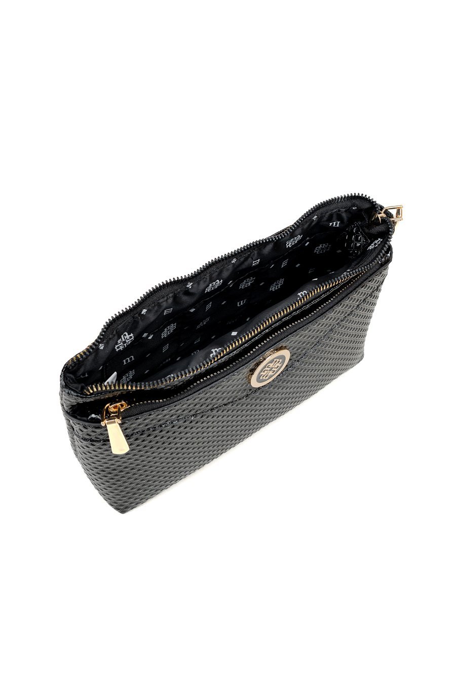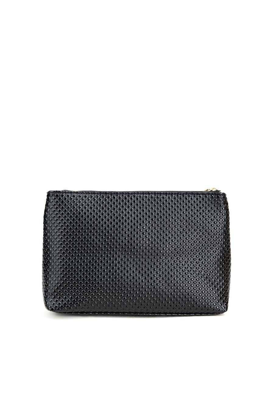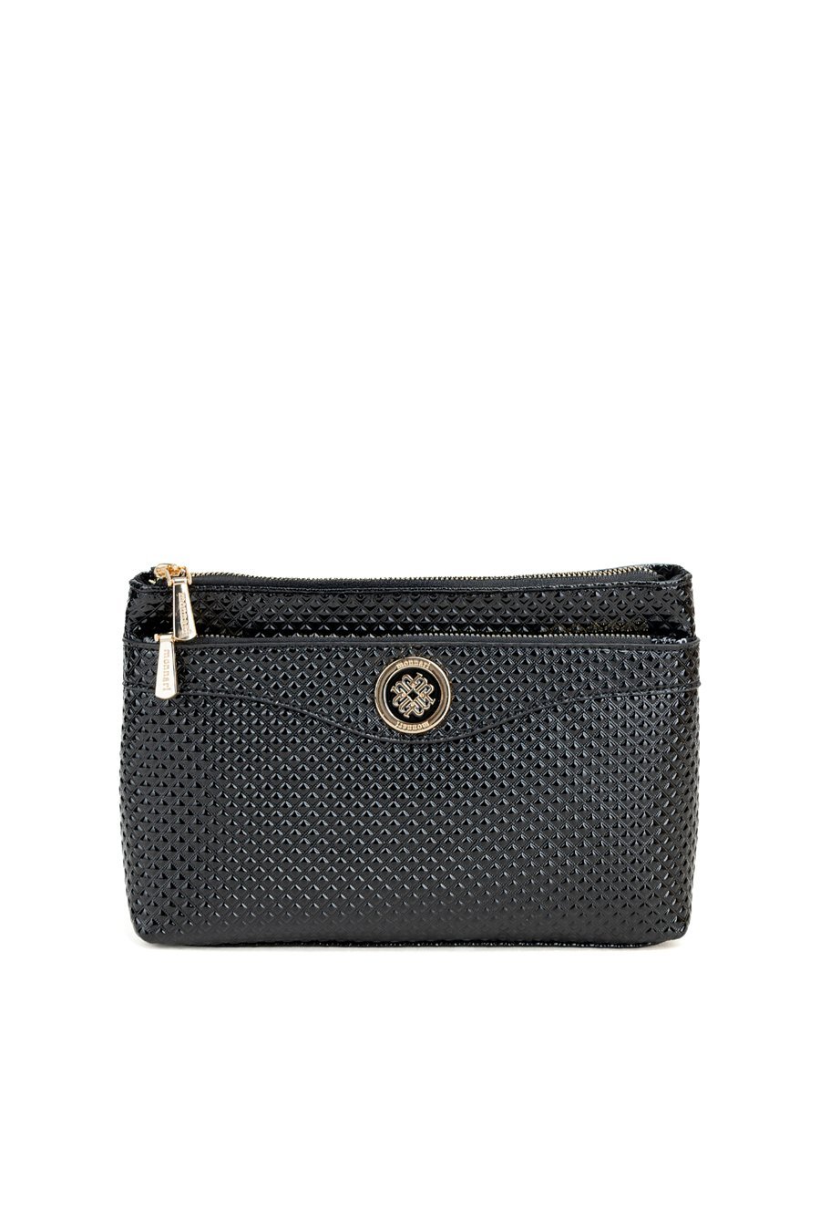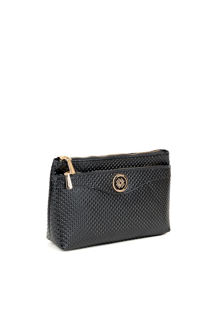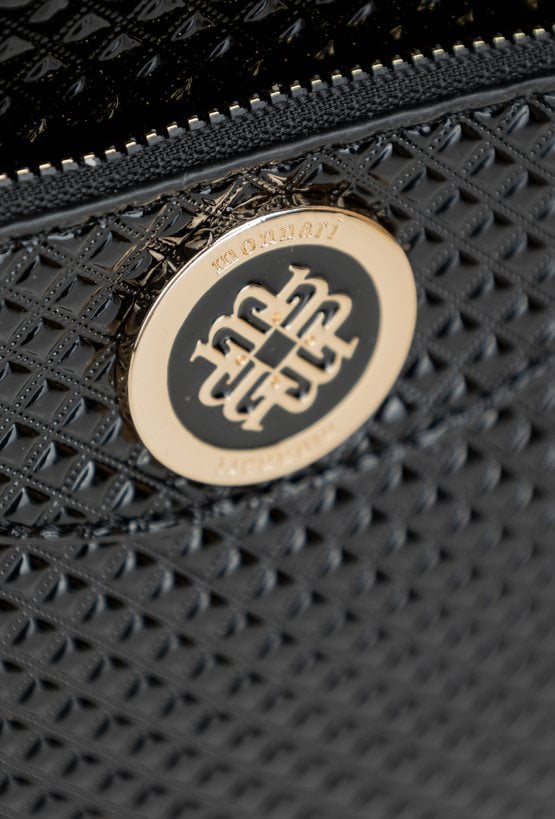 Kosmetyczka damska z praktyczną kieszonką z przodu. Jednokomorowy model z ciemnym, logowanym wnętrzem zapewnia wygodną organizację drobiazgów. Doskonała zarówno do codziennego użytku, jak i jako elegancki prezent. Wymiary: 27 cm x 18 cm x 7 cm.