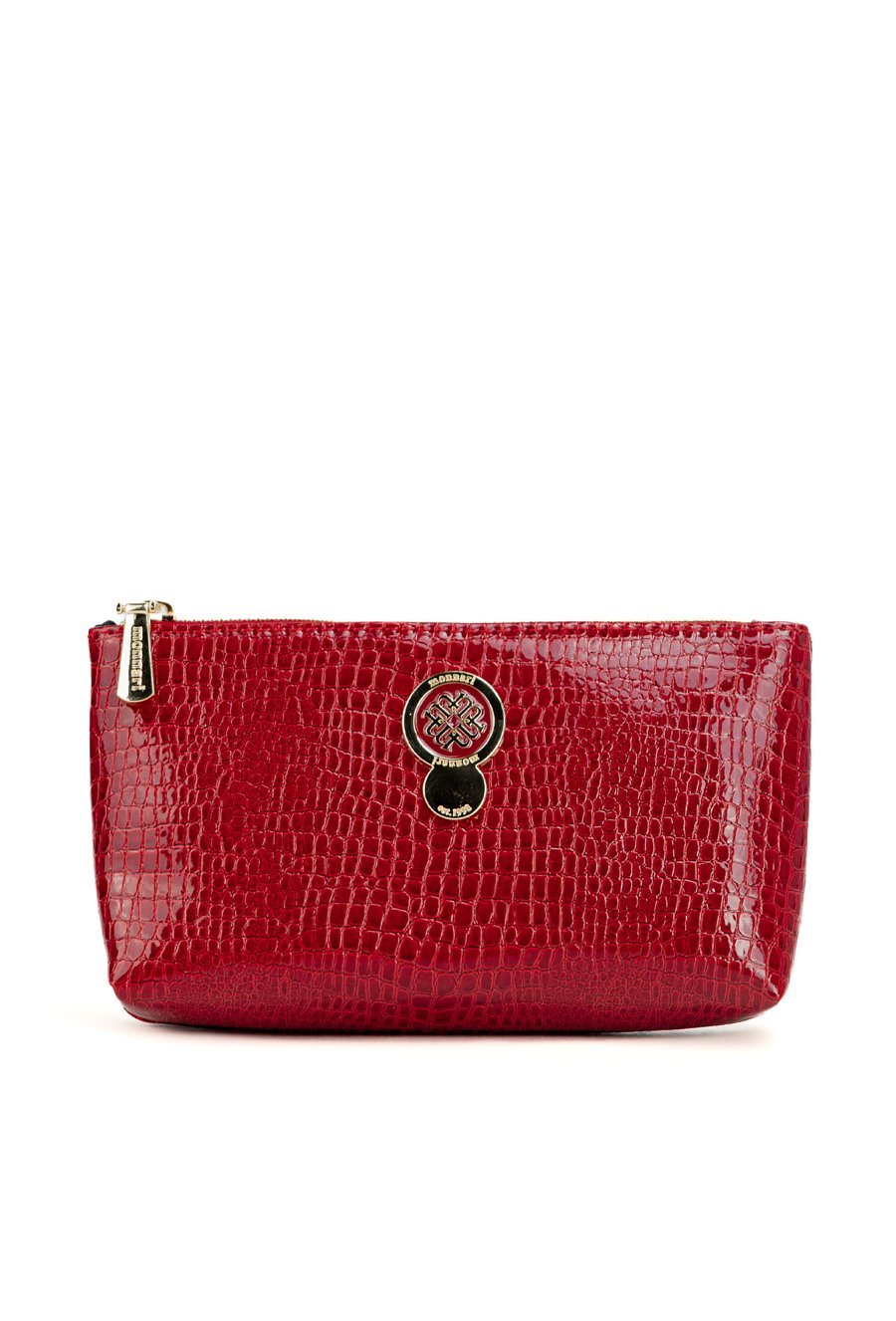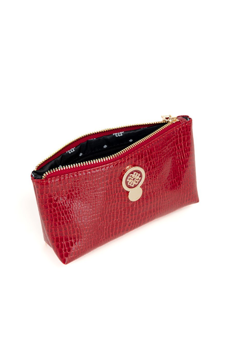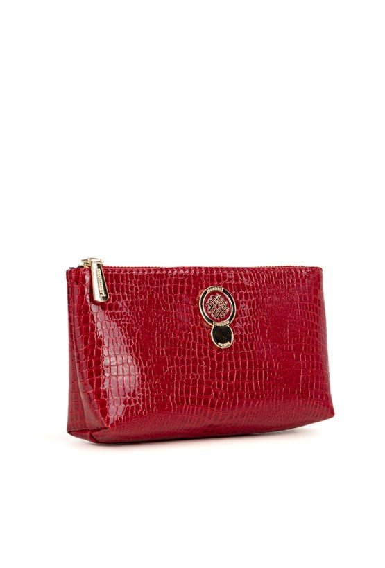 Mała kosmetyczka damska o wymiarach 20 × 11 × 4 cm, wygodna do noszenia w dłoni. Wnętrze wykończone ciemną, logowaną podszewką z praktycznymi kieszonkami na drobiazgi. Doskonała do codziennego użytku, a także jako stylowy prezent.