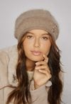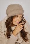 Czapka damska typu beret o miękkiej, puszystej fakturze. Prosty, klasyczny fason nadaje całości elegancki i ponadczasowy charakter. Model w stonowanym kolorze doskonale uzupełni zimowe stylizacje, dodając im delikatności i kobiecego uroku.