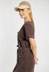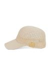 Czapka z daszkiem o lekkim, letnim fasonie, wykonana z przewiewnego, ażurowego materiału w jasnym, naturalnym kolorze. Model z klasycznym daszkiem. Z boku umieszczona subtelna naszywka z logo, dodająca całości stylowego akcentu. Idealna do letnich, casualowych stylizacji oraz na ciepłe, słoneczne dni.