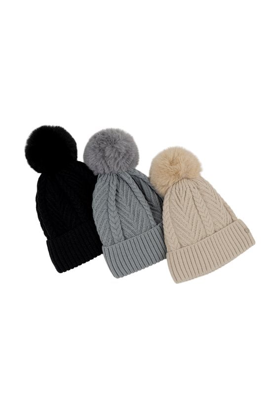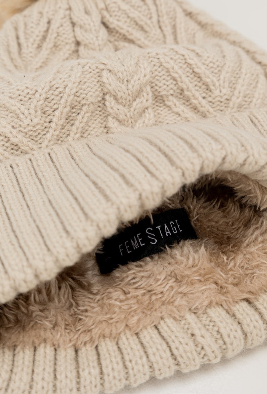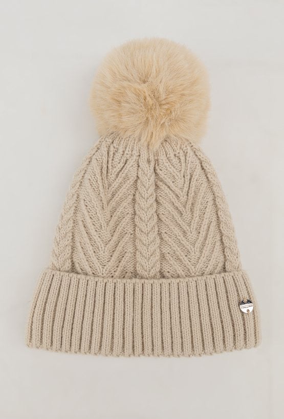 Beżowa czapka z pomponem