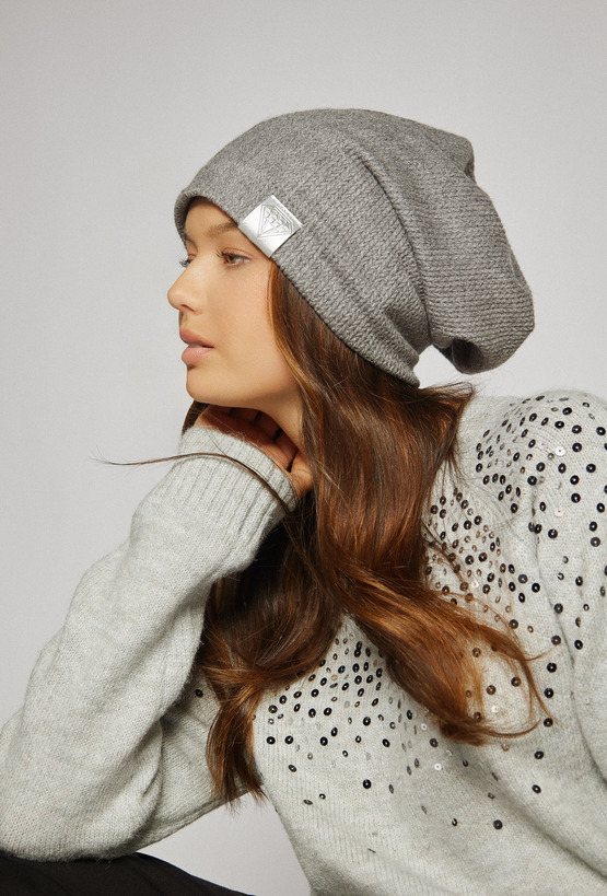 Czapka damska o luźnym kroju typu beanie. Ozdobiona naszywką z logo, która dodaje całości nowoczesnego charakteru. Uniwersalny design sprawia, że świetnie pasuje zarówno do codziennych, jak i sportowych stylizacji.