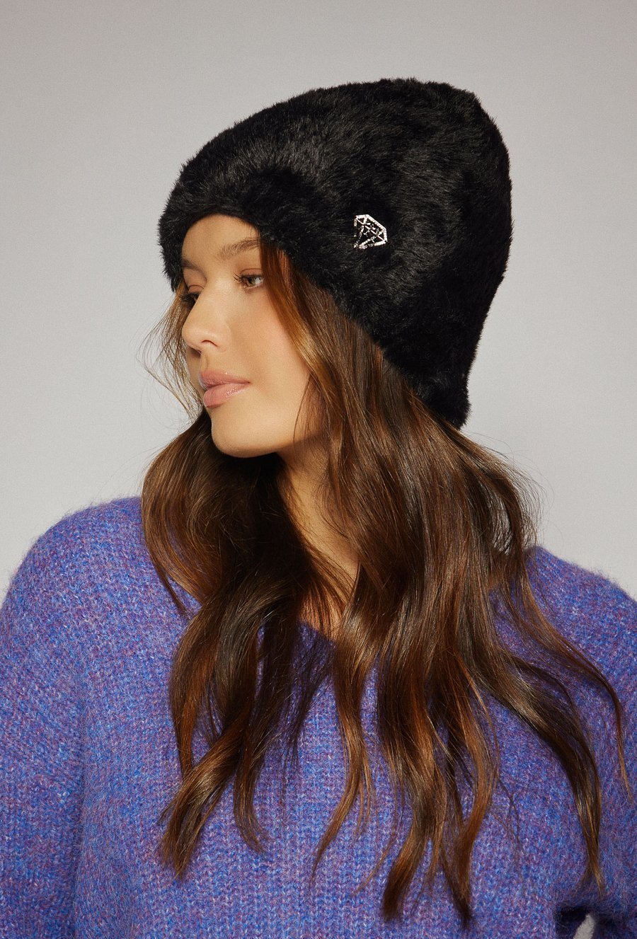 Czapka damska o miękkiej, futrzanej fakturze, która zapewnia wyjątkowy komfort i ciepło w chłodne dni. Prosty, klasyczny fason w modnym kolorze nadaje całości elegancki, a zarazem nowoczesny charakter.