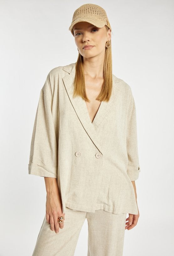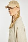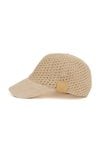 Czapka z daszkiem o lekkim, letnim fasonie, wykonana z przewiewnego, ażurowego materiału w naturalnym, jasnym kolorze. Model z klasycznym daszkiem, który chroni przed słońcem. Idealna do letnich, casualowych stylizacji oraz na wakacyjne wyjazdy.