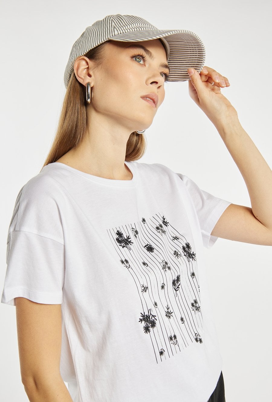 Czapka z daszkiem o klasycznym, casualowym fasonie. Z przodu subtelny haftowany napis, dodający całości nowoczesnego charakteru. Idealna do codziennych, letnich stylizacji i miejskiego looku.