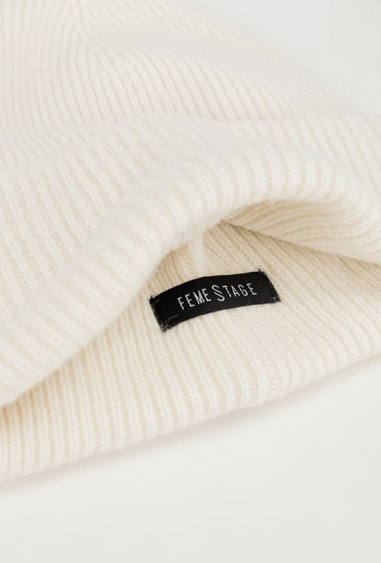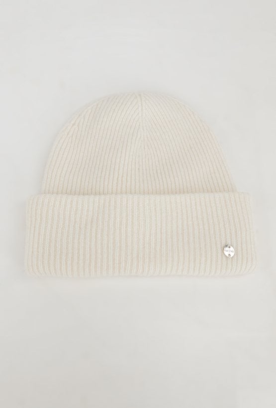 Kremowa czapka ze ściągaczem jest wykonana z wysokogatunkowej wełny . Czapka pięknie będzie się prezentował przy twarzy. Miękka i przyjemna w dotyku dzianina doskonale dostosowuje się do kształtu głowy.