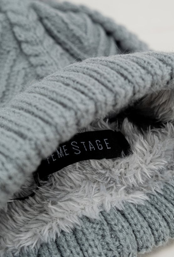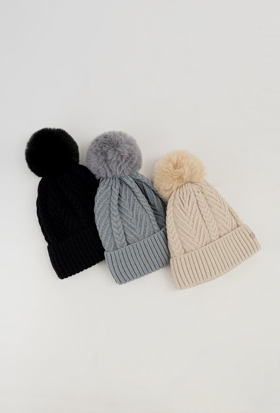 Stylowa, czarna czapka o grubym, modnym splocie to must-have na chłodne dni! Wnętrze wykończone mięciutkim, ciepłym „misiem” zapewni maksymalny komfort nawet podczas największych mrozów. Całość dopełnia uroczy pompon w tym samym kolorze, który dodaje lekkości i dziewczęcego uroku. Ten model nie tylko świetnie grzeje, ale też pięknie podkreśla rysy twarzy — idealny wybór na zimowy sezon!