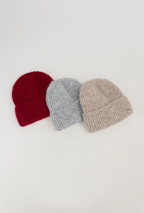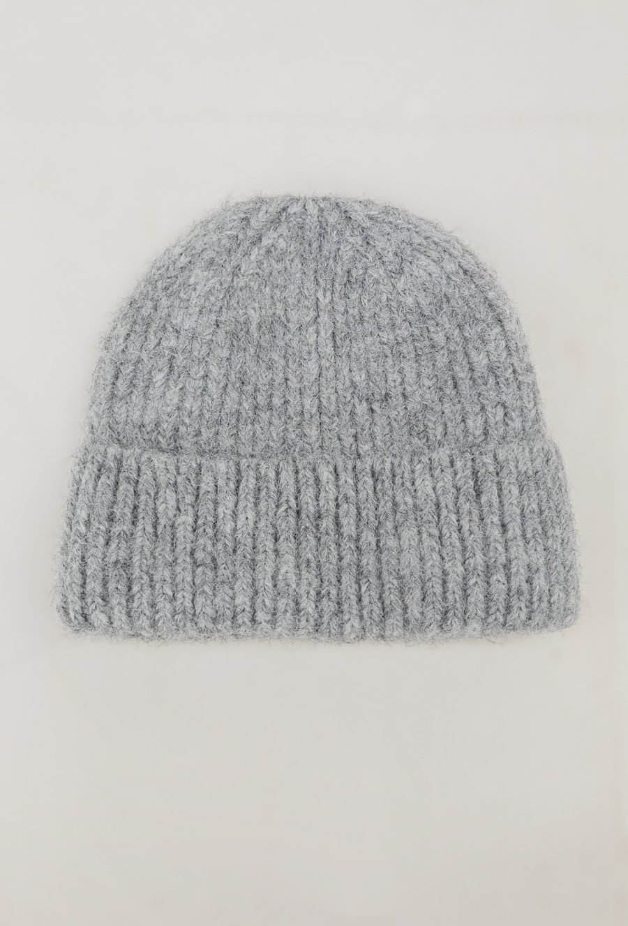 Szara czapka ze ściągaczem jest z dodatkiem alpaki i wełny . Czapka pięknie będzie się prezentował przy twarzy. Miękka i przyjemna w dotyku dzianina doskonale dostosowuje się do kształtu głowy.