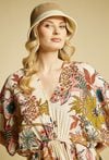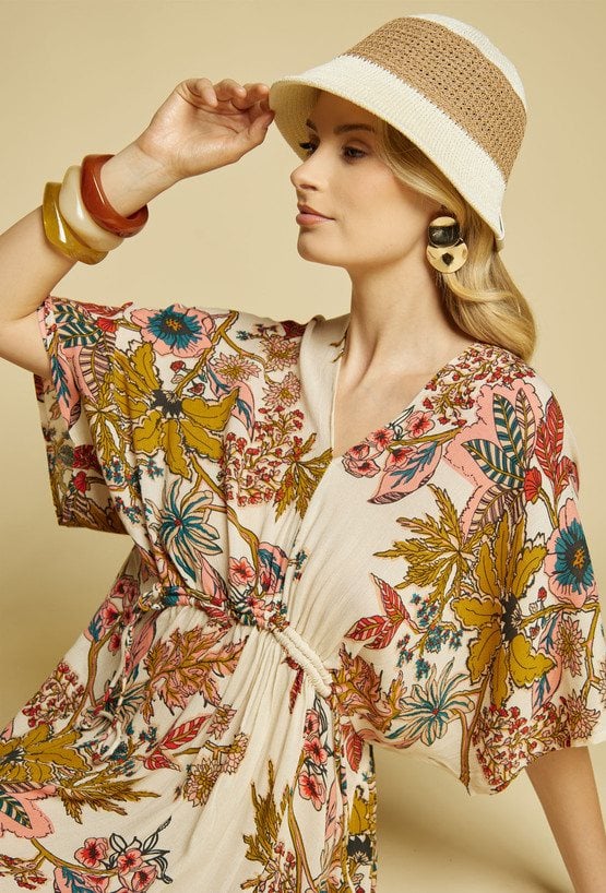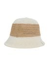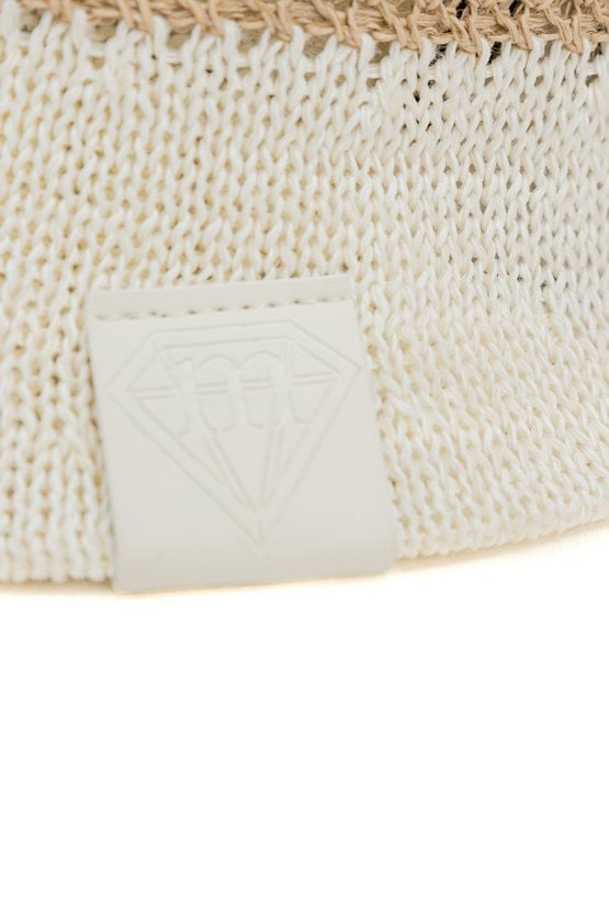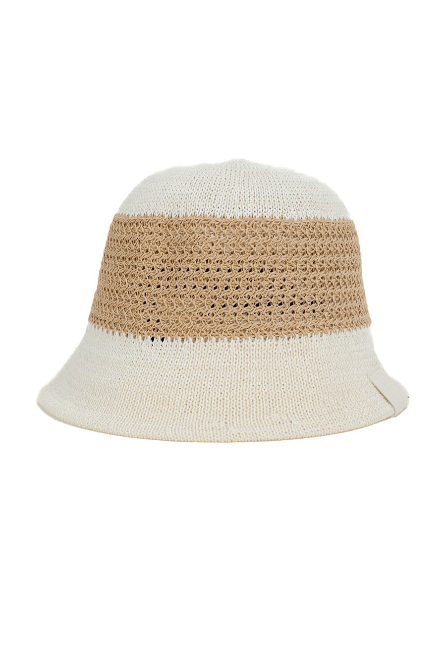 Kapelusz damski o lekkim, letnim fasonie, wykonany z plecionego materiału w jasnym, naturalnym kolorze. Model z kontrastowym, ażurowym pasem, który zapewnia dobrą cyrkulację powietrza i nadaje całości stylowego charakteru. Miękkie rondo delikatnie chroni przed słońcem i gwarantuje komfort noszenia w ciepłe dni. Idealny dodatek do letnich stylizacji
