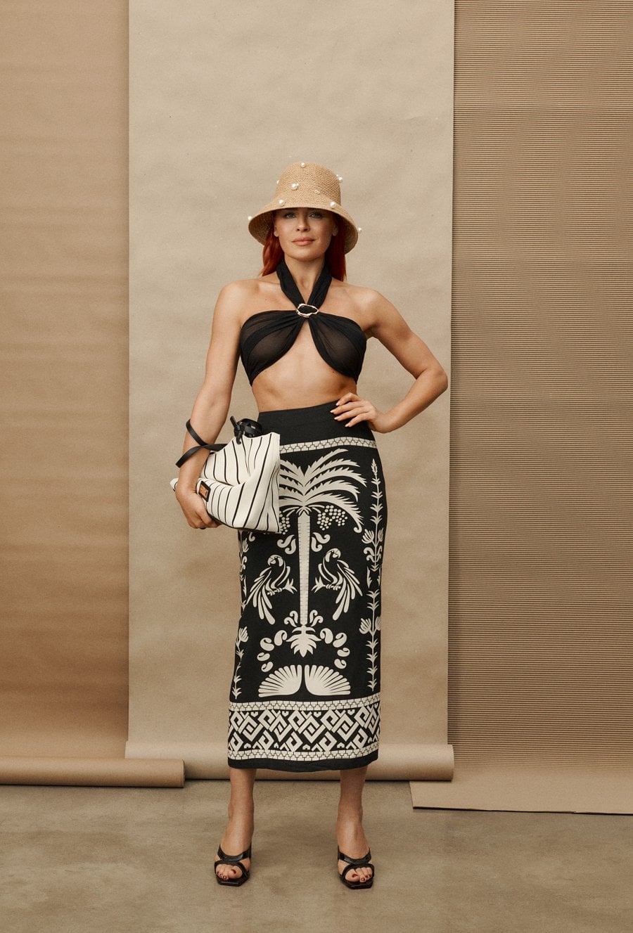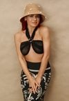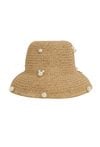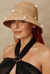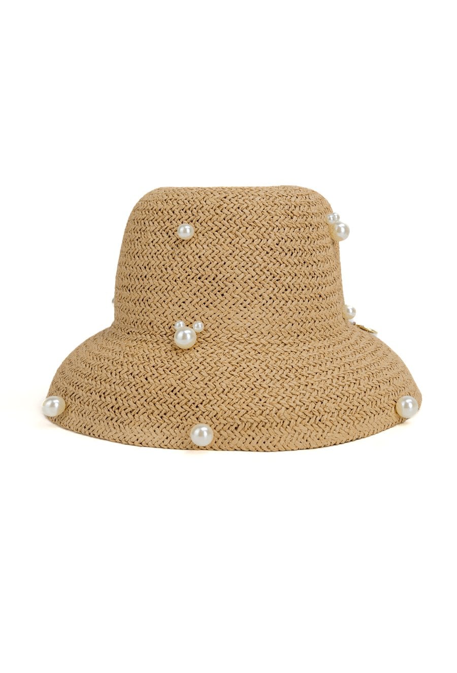 Kapelusz damski o eleganckim, letnim fasonie, wykonany z plecionego materiału w naturalnym, beżowym kolorze. Model z klasycznym rondem, który zapewnia ochronę przed słońcem i nadaje całości stylowego charakteru. Kapelusz ozdobiony dekoracyjnymi koralikami.