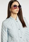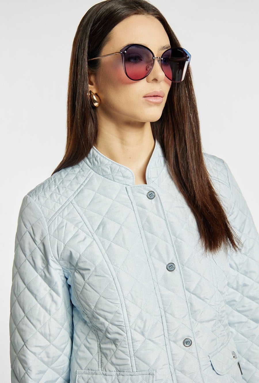 Okulary przeciwsłoneczne damskie o nowoczesnym, lekkim fasonie. Model z cienkimi, metalowymi oprawkami oraz dużymi soczewkami z wyrazistym efektem ombre, które zapewniają skuteczną ochronę przed promieniowaniem słonecznym. Damskie okulary przeciwsłoneczne doskonale sprawdzą się w letnich oraz wakacyjnych stylizacjach, stanowiąc modny i funkcjonalny dodatek na słoneczne dni.