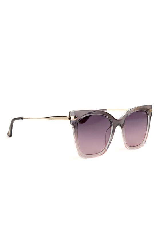 Okulary przeciwsłoneczne damskie o eleganckim, kobiecym fasonie. Model z lekko zaokrąglonymi oprawkami oraz soczewkami z efektem ombre, które zapewniają skuteczną ochronę przed promieniowaniem słonecznym. Damskie okulary przeciwsłoneczne doskonale sprawdzą się w codziennych oraz bardziej eleganckich stylizacjach, stanowiąc modny i funkcjonalny dodatek na słoneczne dni.