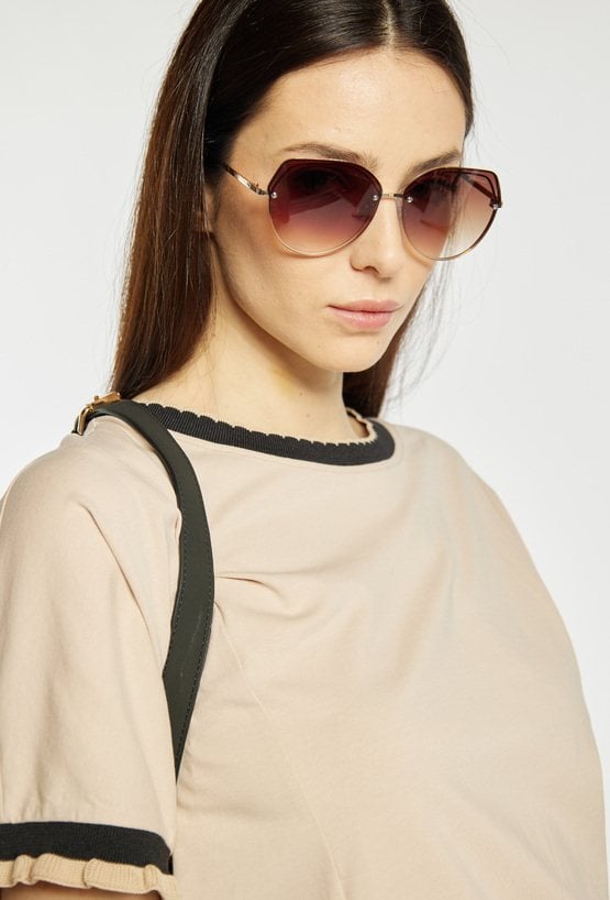 Okulary przeciwsłoneczne damskie o eleganckim, nowoczesnym kształcie. Smukłe zauszniki oraz subtelne detale nadają całości stylowego charakteru. Idealne jako modny dodatek do codziennych i letnich stylizacji.