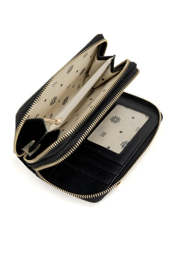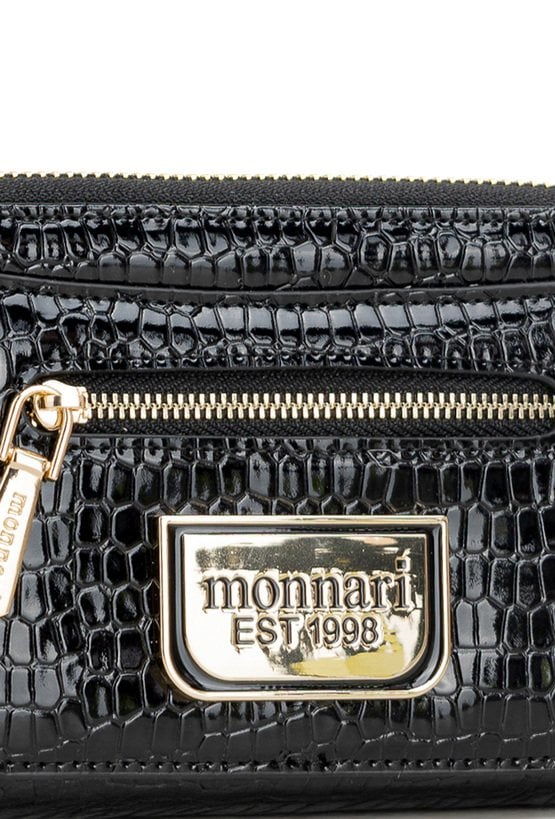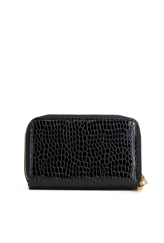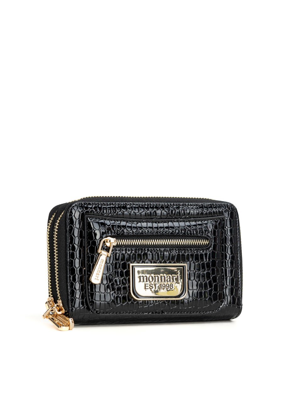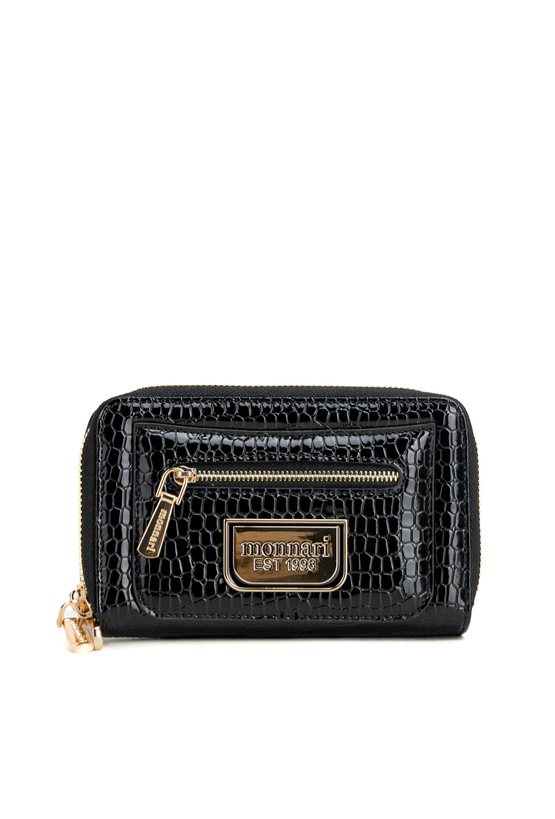 Portfel damski o wymiarach 16,5 x 9,5 x 3,5 cm. Wyposażony w dwie praktyczne komory zapinane na suwak oraz dodatkową kieszonkę z przodu – idealną na drobiazgi. Całość uzupełniają stylowe, złote suwaki, które dodają elegancji.