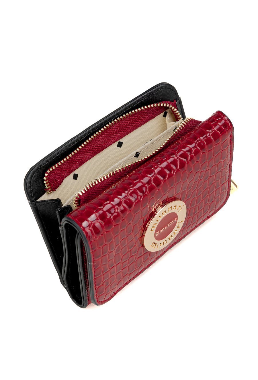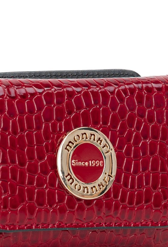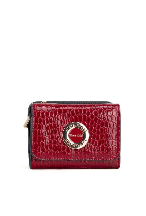 Wzorzysty mały portfel (11,5 cm x 8,5 cm x 4 cm), zamykany na napę. Portfel oferuje miejsca na karty, banknoty oraz jedno miejsce na zdjęcie. Dodatkowo, z tyłu znajduje się kieszonka zapinana na suwak, idealna do przechowywania monet.