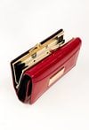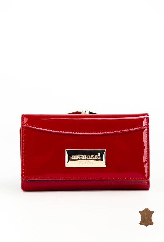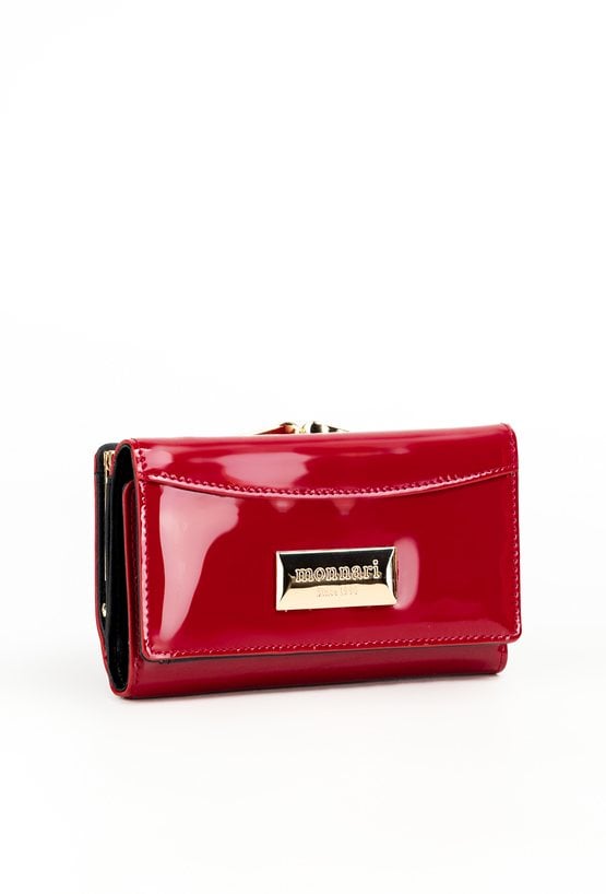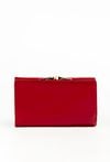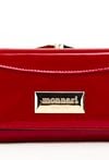 Portfel damski o wymiarach 14 x 8 x 3,5 cm. Wyposażony w praktyczną kieszonkę na monety, podzieloną na dwie komory i zamykaną na zatrzask. Główna część portfela zapinana jest na napę i ozdobiona złotym logo marki. Wewnątrz znajdują się liczne kieszonki na karty, przegroda na banknoty oraz specjalne miejsce na zdjęcie.