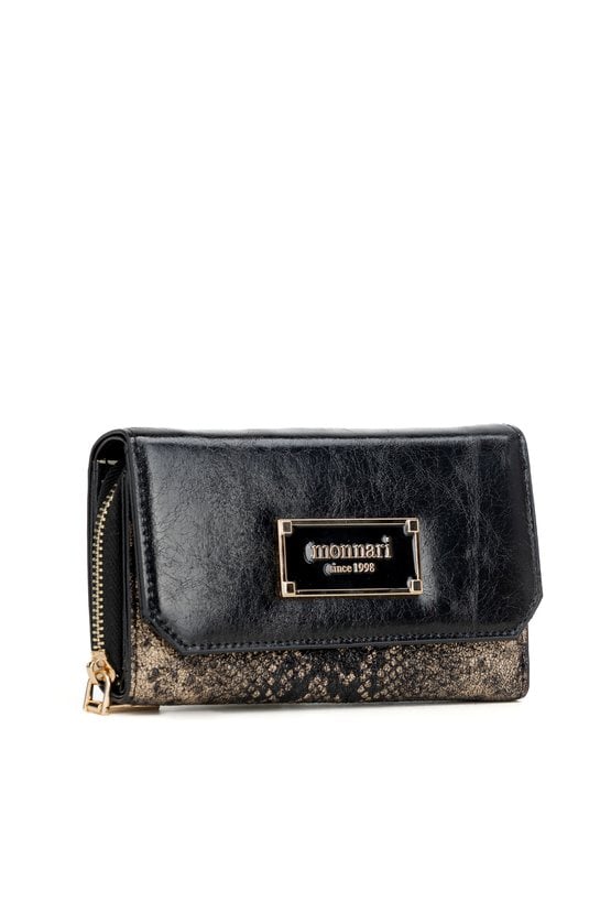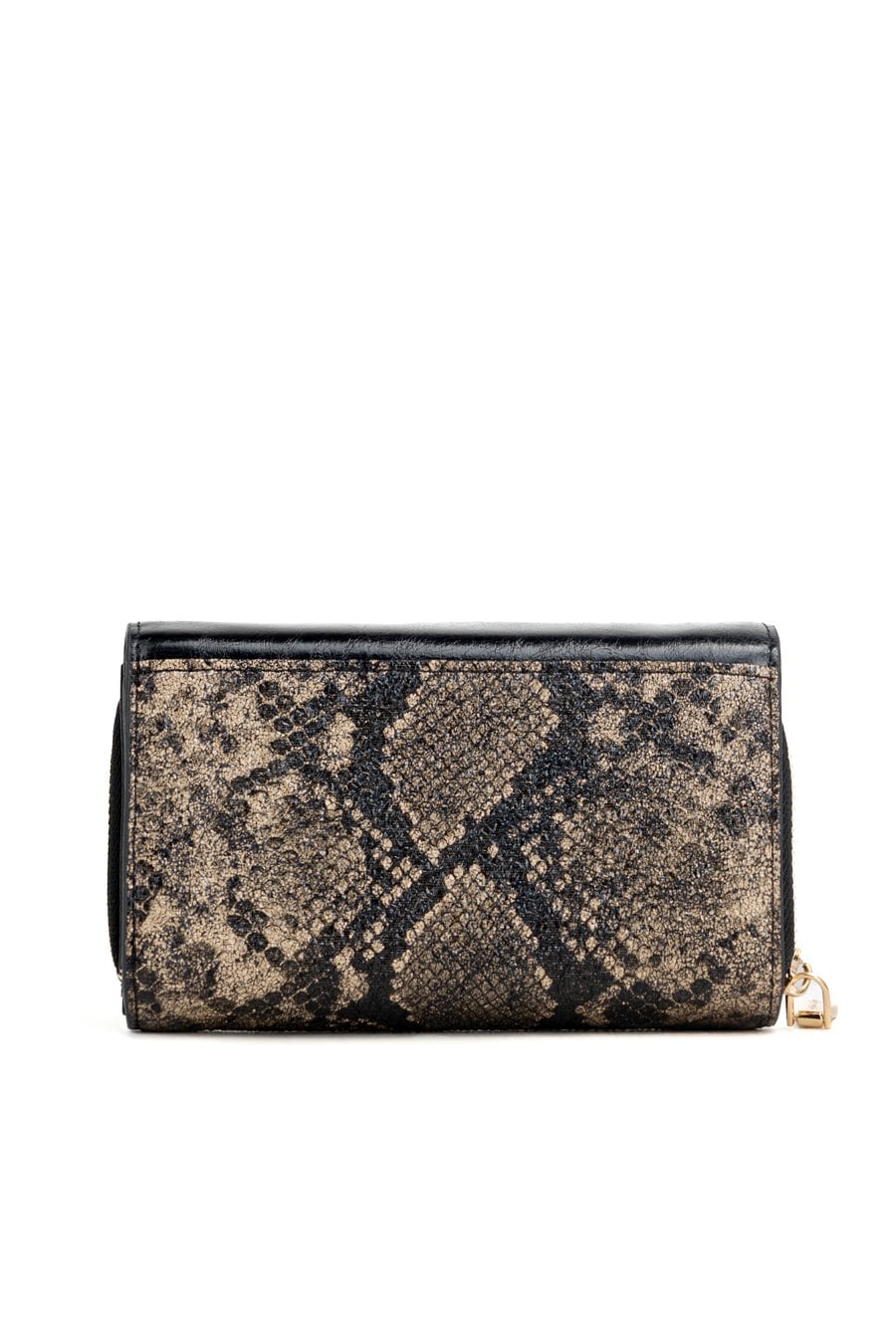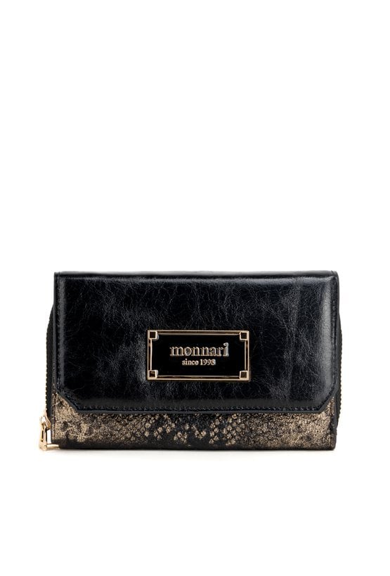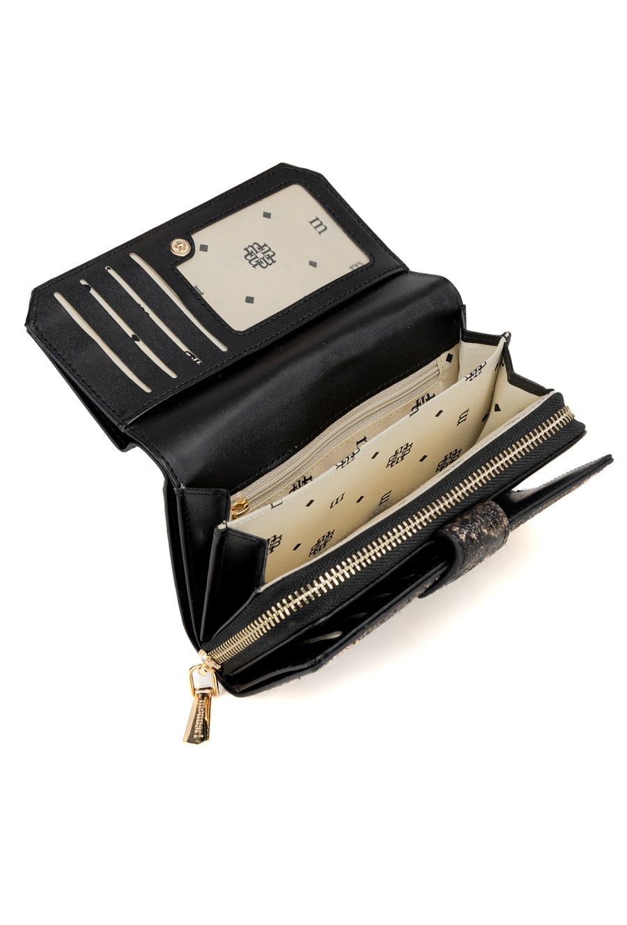 Portfel damski o wymiarach 16 cm x 10 cm x 4 cm, z klapą zapinaną na napę. Wnętrze portfela oferuje liczne przegródki oraz miejsca na karty i banknoty, a także kieszonkę zapinaną na suwak. Dodatkowym atutem jest miejsce na zdjęcie.