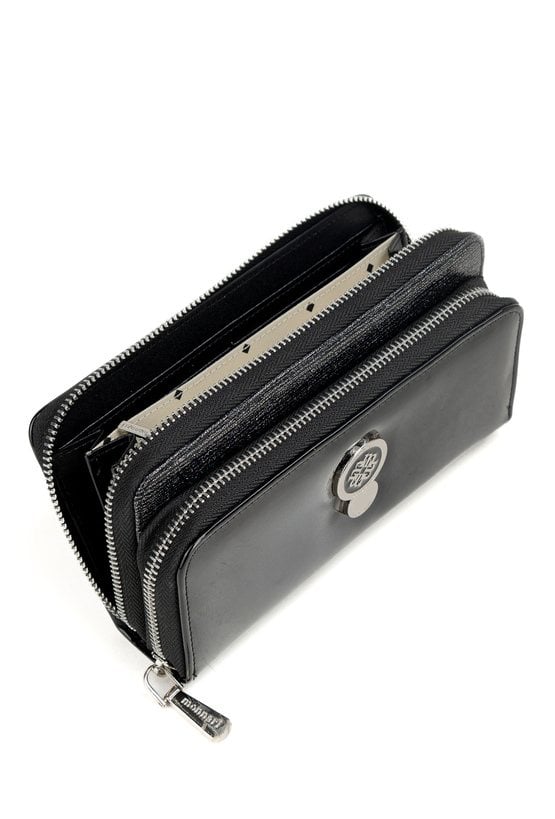 Portfel damski z subtelnym dodatkiem zwierzęcego wzoru. Wnętrze portfela oferuje wiele przegródek na karty i banknoty, w tym jedną zamykaną na suwak. Dodatkowym atutem jest kieszonka z przodu, zapinana na suwak, idealna do przechowywania drobnych przedmiotów. Wymiary: 19 cm x 12 cm x 4,5 cm