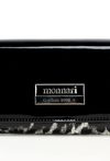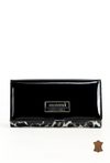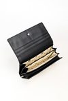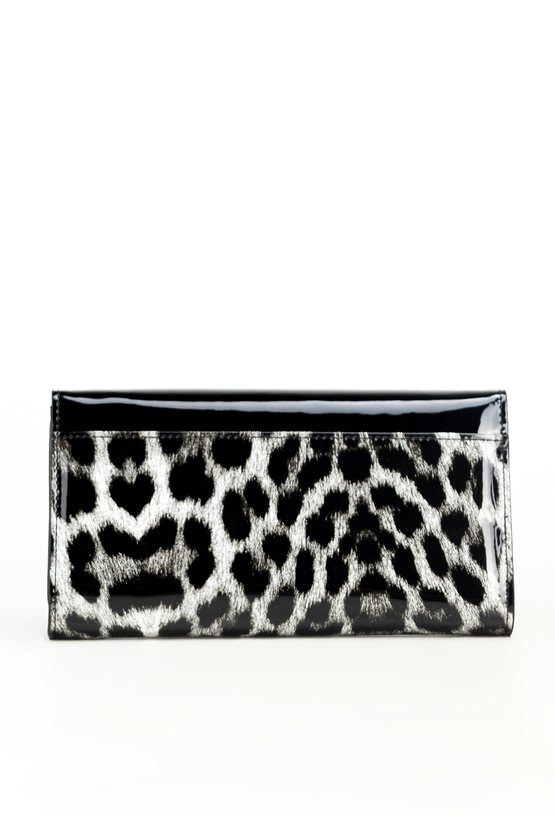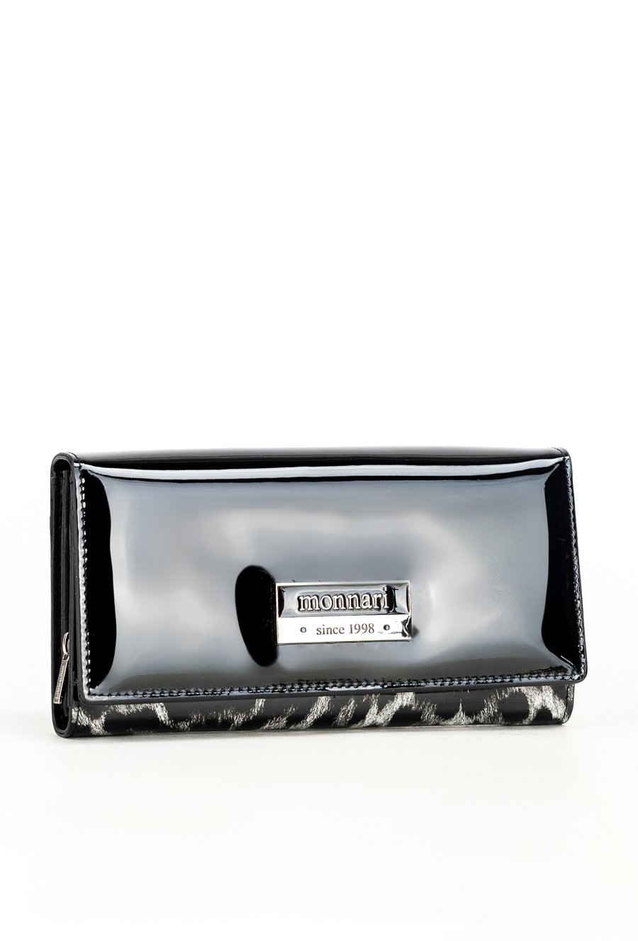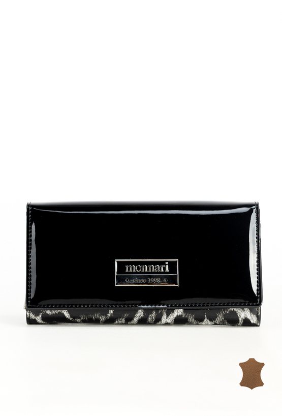 Portfel damski o wymiarach 19 cm x 10 cm x 3 cm. Wnętrze zostało starannie zaprojektowane – znajdziesz w nim liczne przegródki na karty, przestronne kieszenie na banknoty oraz praktyczną przegrodę zapinaną na suwak, idealną do przechowywania monet. Dodatkowym atutem są dwa okienka na zdjęcia. Portfel zamykany jest na klapę z wygodnym zatrzaskiem