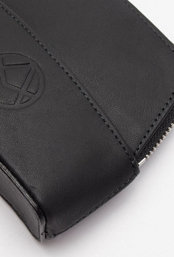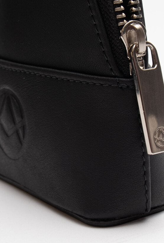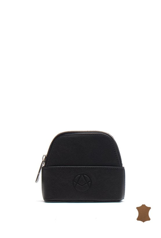 Portfel Vivienne to elegancki model ze skóry naturalnej w kolorze czarnym, o trapezowym kształcie i sztywnej konstrukcji. Zdobiony subtelnym logo AKARDO, zamykany na metalowy zamek. Wnętrze z wodoodporną, logowaną podszewką i przestronną komorą na pieniądze łączy styl z funkcjonalnością. Wymiary: 10x12x4 cm