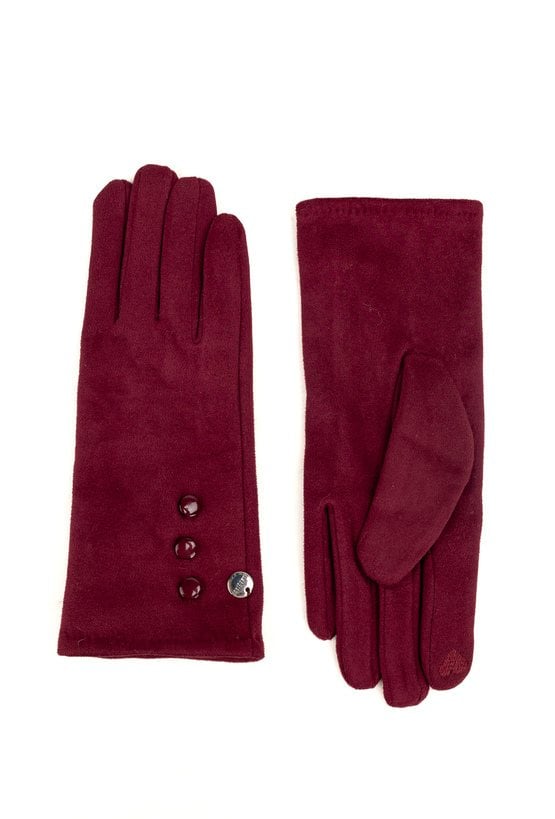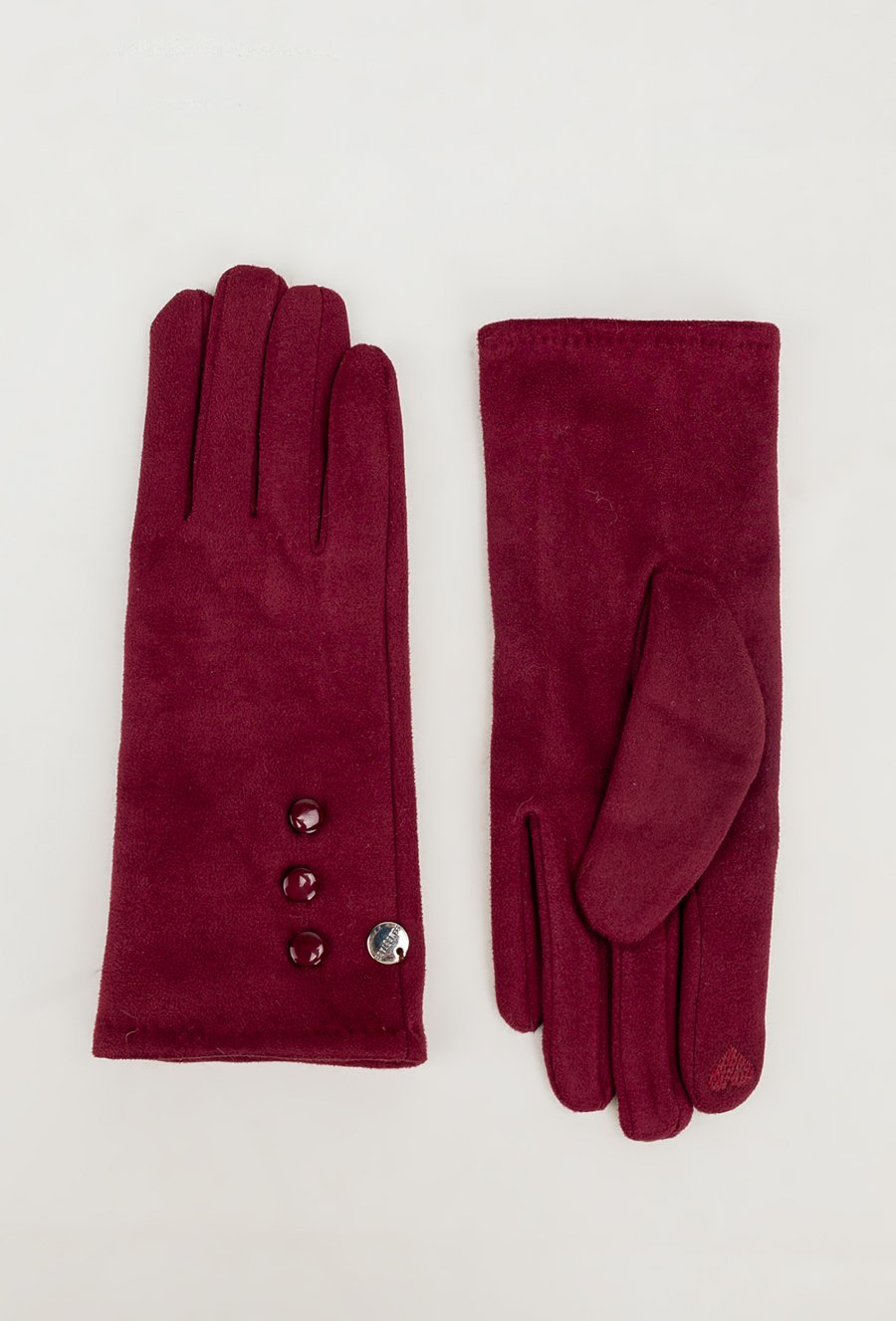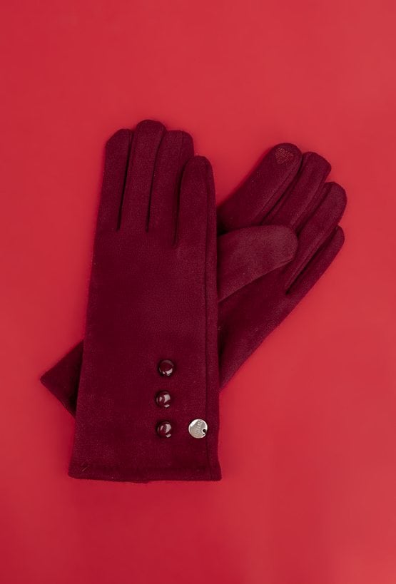 Burgundowe rękawiczki z ozdobnymi guziczkami