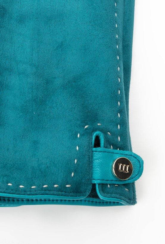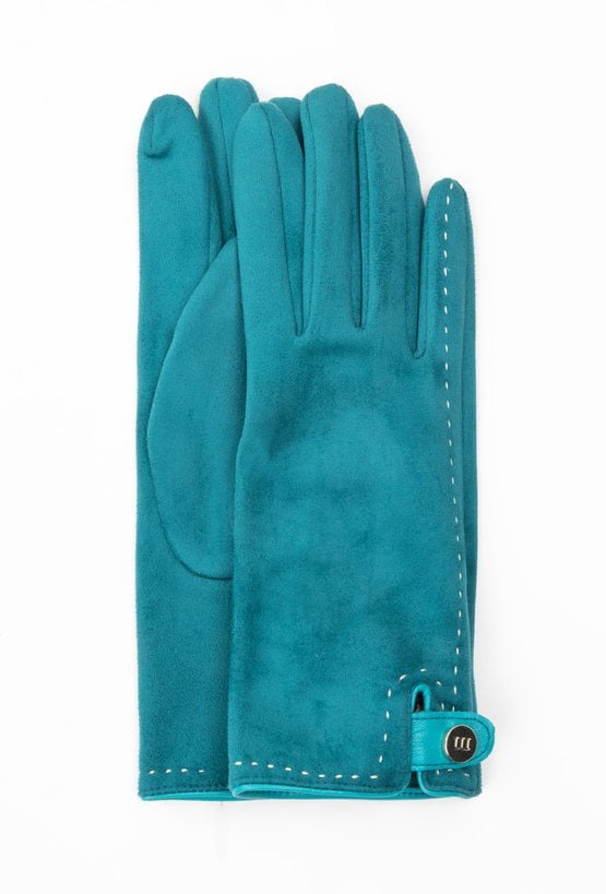 Dzianinowe rękawiczki damskie wykonane z przyjemnego w dotyku materiału. Rękawiczki z ozdobnym szyciem oraz napą. Idealnie sprawdzą się na chłodne dni.
