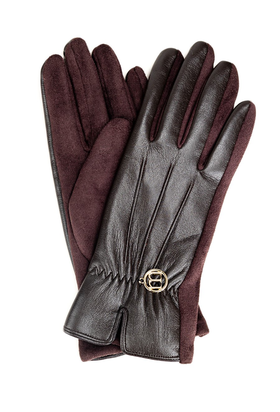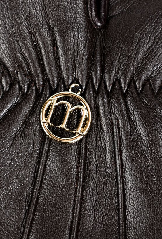 Klasyczne rękawiczki w odcieniu głębokiego brązu. Subtelne marszczenie na wierzchu dłoni oraz delikatne, metalowe logo dodają im elegancji. Doskonałe na chłodniejsze dni.