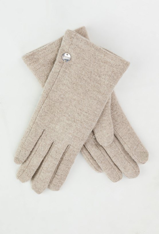 Klasyczne rękawiczki z domieszką kaszmiru w ciepłym beżowym odcieniu to doskonały wybór na zimowe dni. Technologia touch screen na palcu wskazującym umożliwia korzystanie z urządzeń z ekranem dotykowym.Dzięki stonowanemu kolorowi łatwo dopasowuje się do różnych stylizacji.