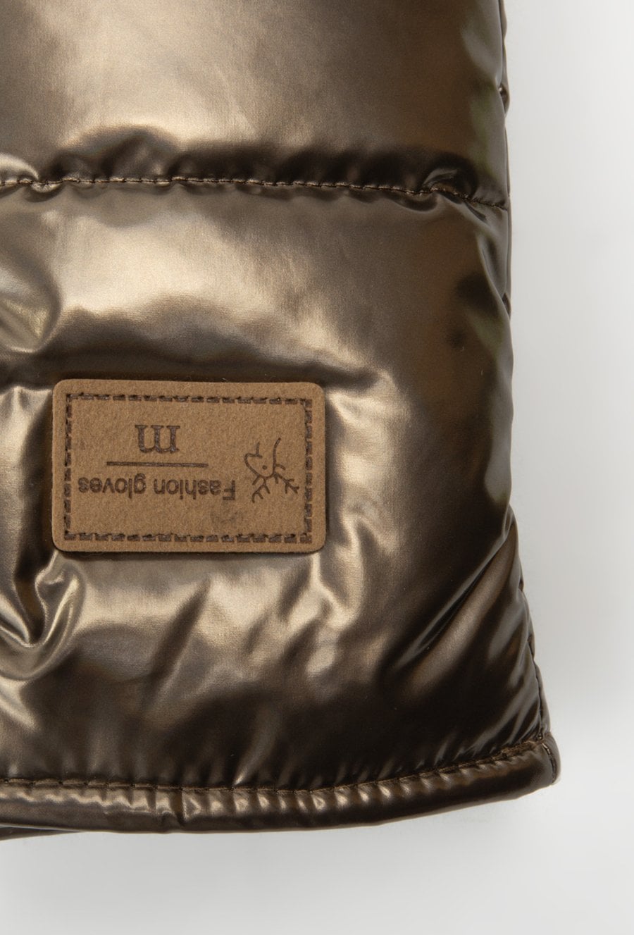 Rękawiczki jednopalczaste damskie, wykonane z połyskującego materiału. Na przodzie znajduje się logo marki Monnari. Idealne na chłodniejsze dni.