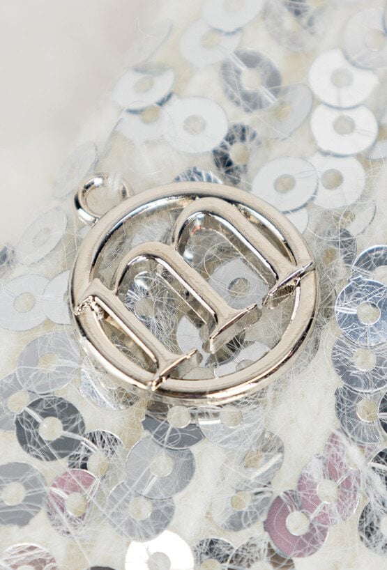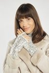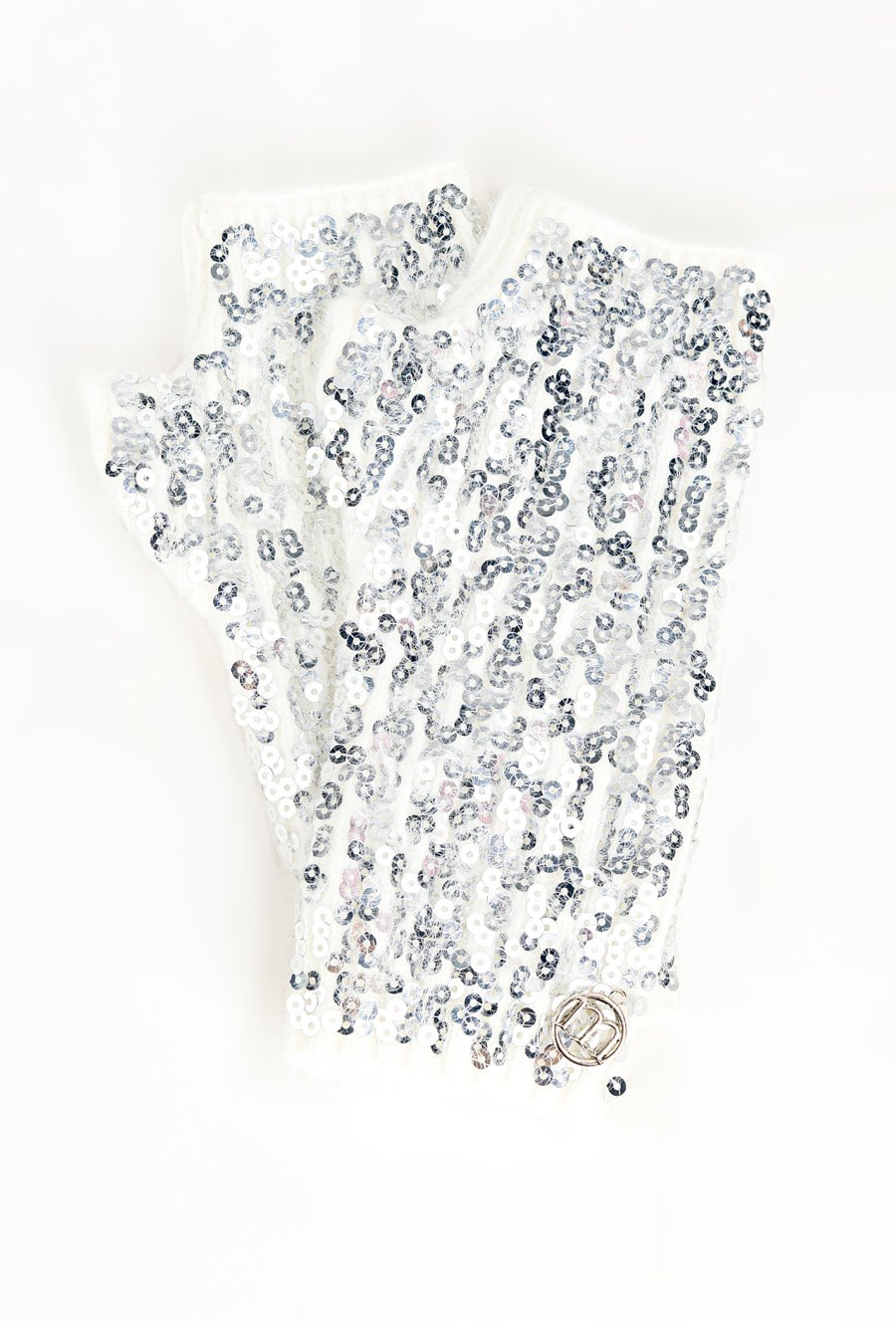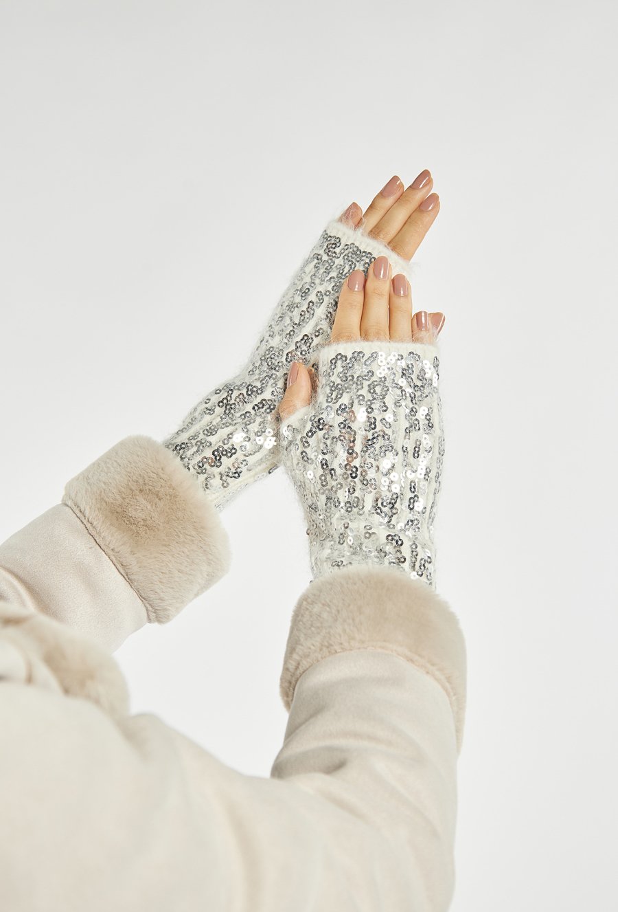 Stylowe rękawiczki bez palców. Rękawiczki pokryte efektownymi czarnymi cekinami, które pięknie połyskują w świetle.