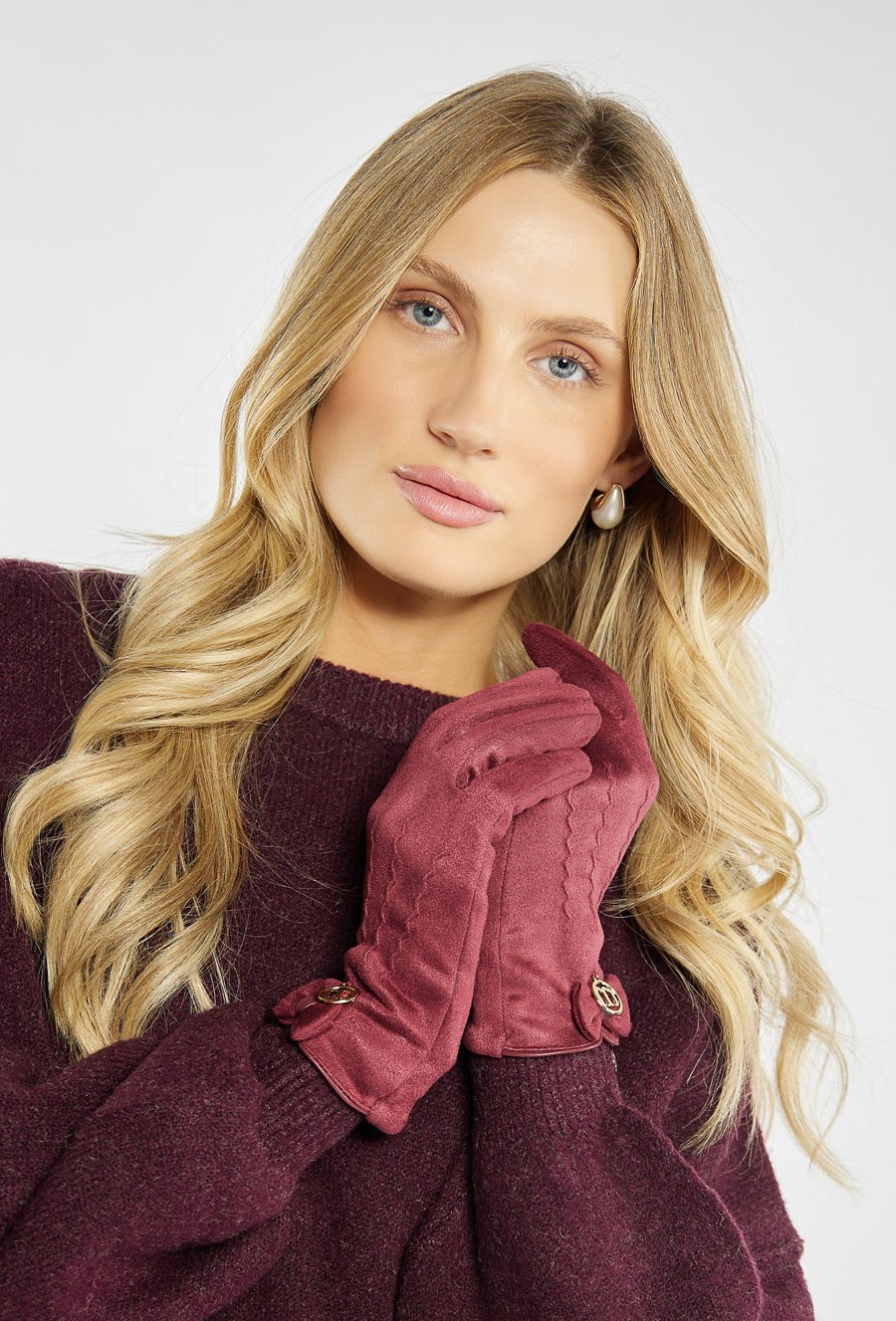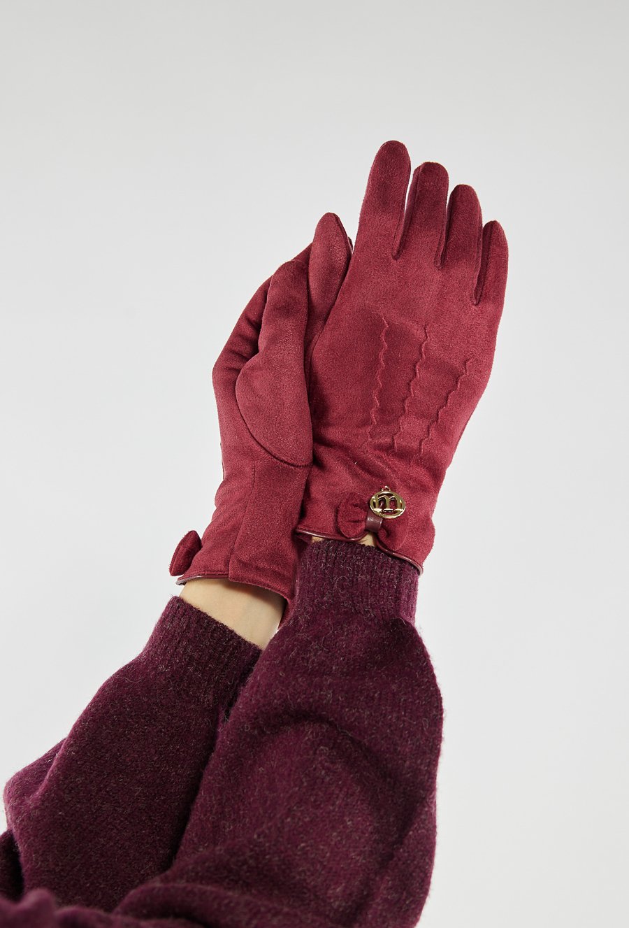 Stylowe rękawiczki ozdobione delikatną kokardką. Doskonały wybór do jesiennych i zimowych stylizacji.