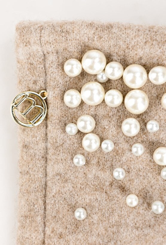 Rękawiczki damskie o eleganckim kroju. Wykończone aplikacją z koralików, która dodaje im wyjątkowego, kobiecego charakteru i subtelnego blasku.