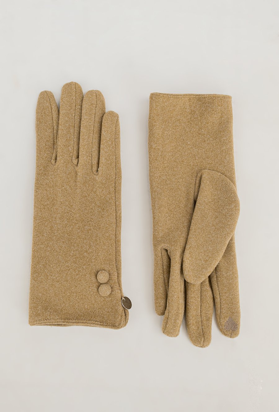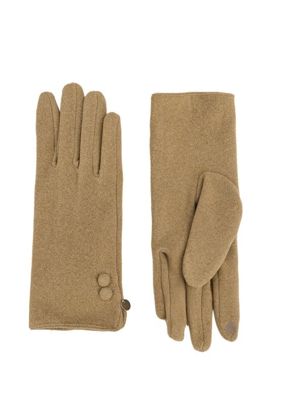 Eleganckie rękawiczki w pięknym kamelowym kolorze to świetny dodatek, który łączy funkcjonalność z estetyką. Rękawiczki zdobią małe guziczki.