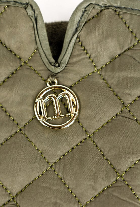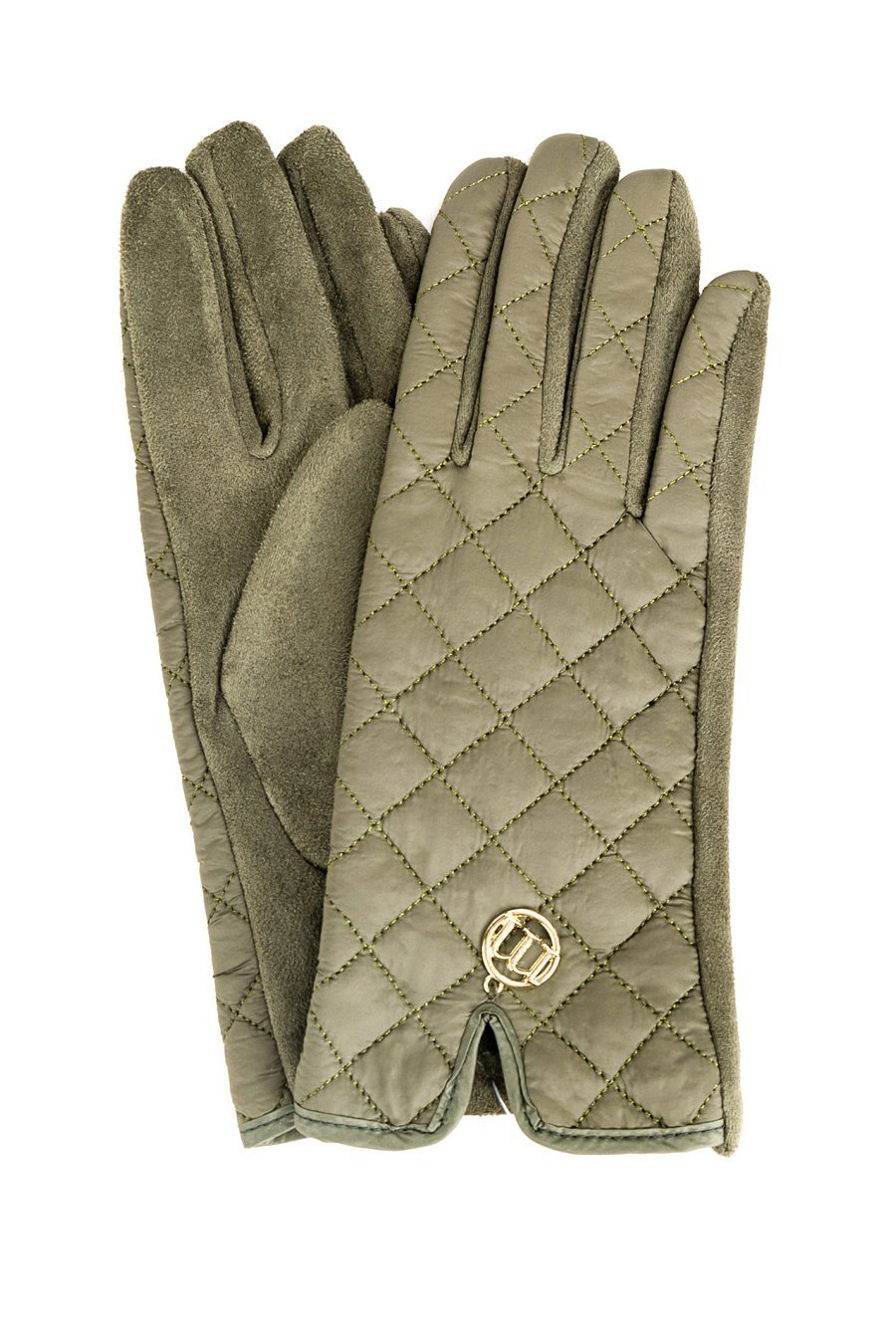 Stylowe rękawiczki damskie o pikowanym wzorze. Ozdobione subtelnym, metalowym logo marki oraz delikatnym rozcięciem przy nadgarstku.