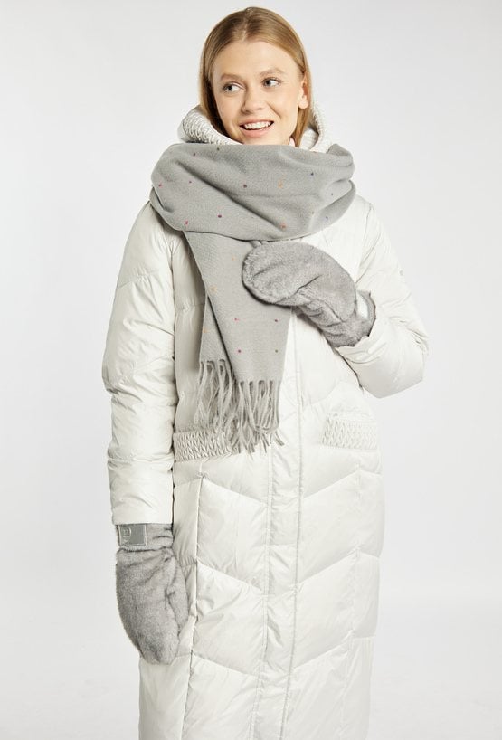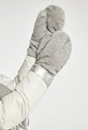 Szare, miękkie rękawiczki jednopalczaste. Model o ciepłym, otulającym wnętrzu, idealny na chłodne zimowe dni. Ozdobione subtelną naszywką z logo, która dodaje im nowoczesnego charakteru.