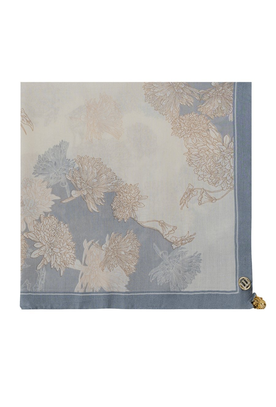 Apaszka w stonowanej, eleganckiej kolorystyce z delikatnym motywem kwiatowym. Subtelny rysunek i miękkie przejścia barw nadają jej lekkości i klasy. Idealna do wiosennych stylizacji