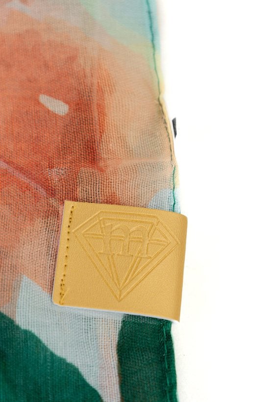 Chusta z dużym, malarskim kwiatowym wzorem. Delikatnie wykończone brzegi i subtelna kolorystyka sprawiają, że łatwo dopasować ją do różnych stylizacji.