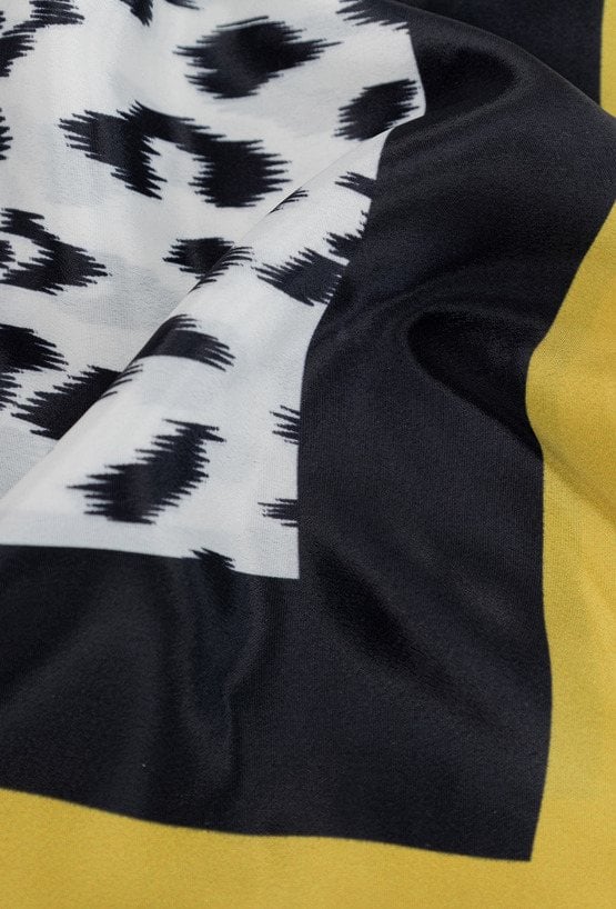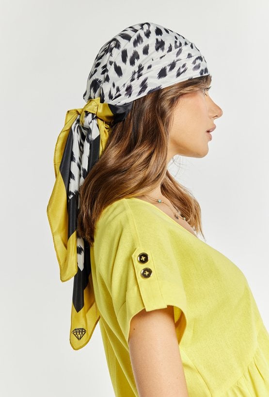 Apaszka damska ze zwierzęcym wzorem, wykonana z miękkiej, satynowej tkaniny. Apaszka z pewnością nada stylizacjom szyku.