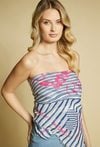 Stylowa chusta damska o lekkiej, zwiewnej strukturze. Model z efektownym wzorem oraz możliwością różnorodnego wiązania, dzięki czemu można nosić ją na wiele sposobów. Doskonale sprawdzi się jako pareo, top lub dodatek do letnich stylizacji, nadając im modnego i oryginalnego charakteru.