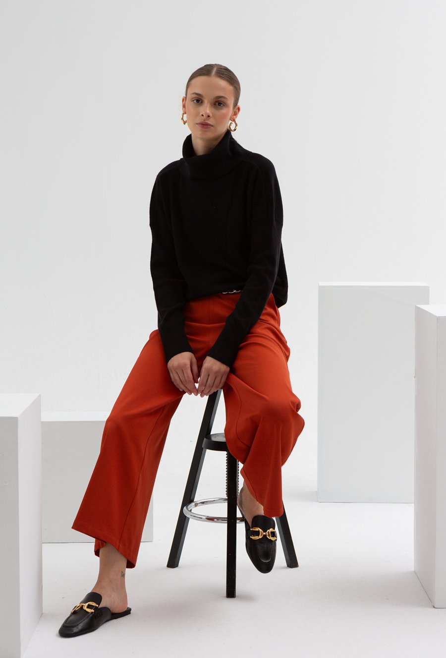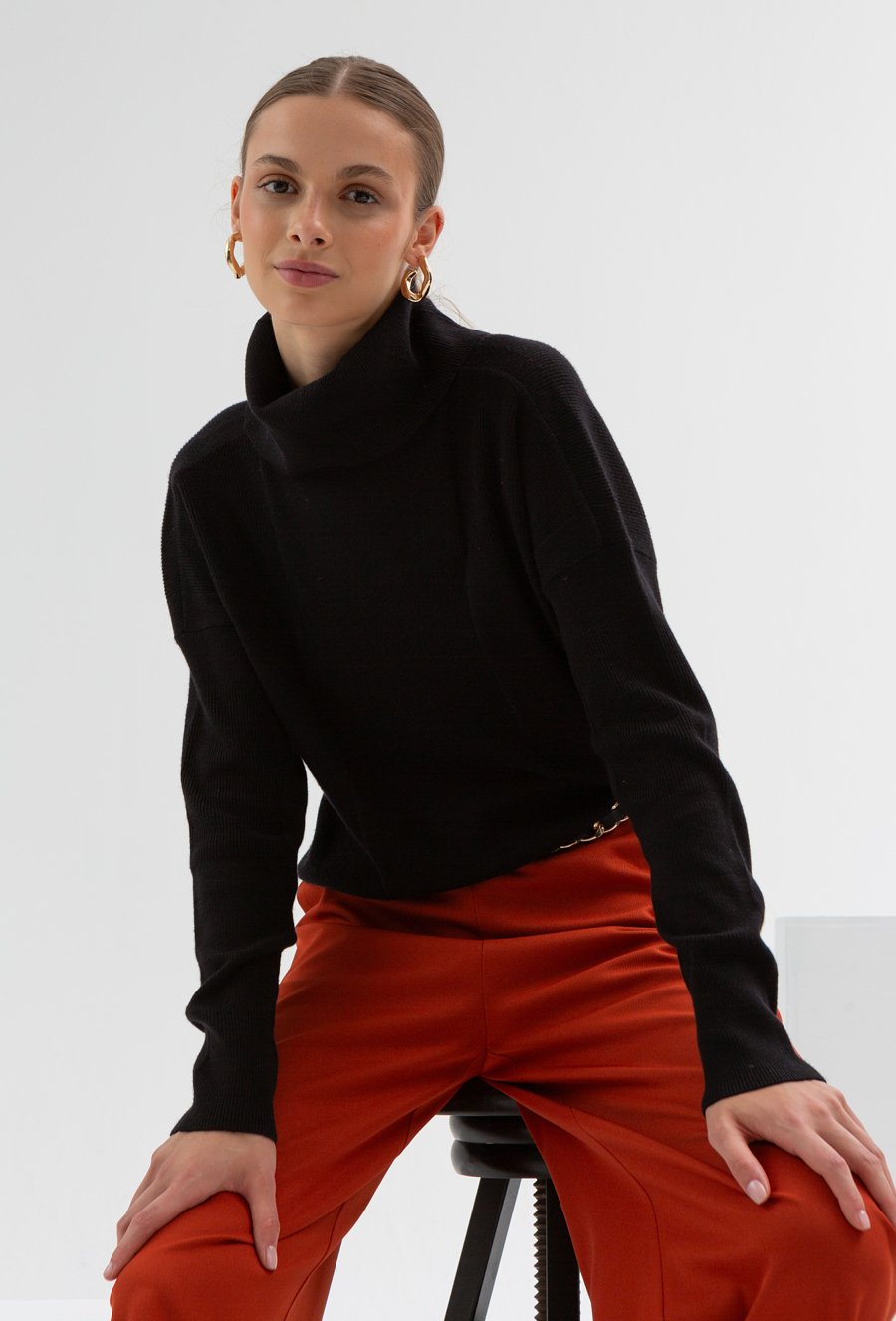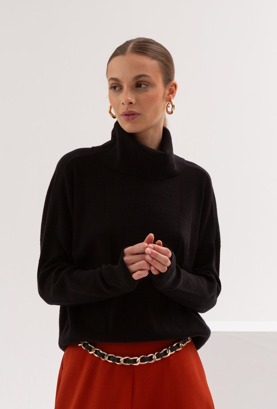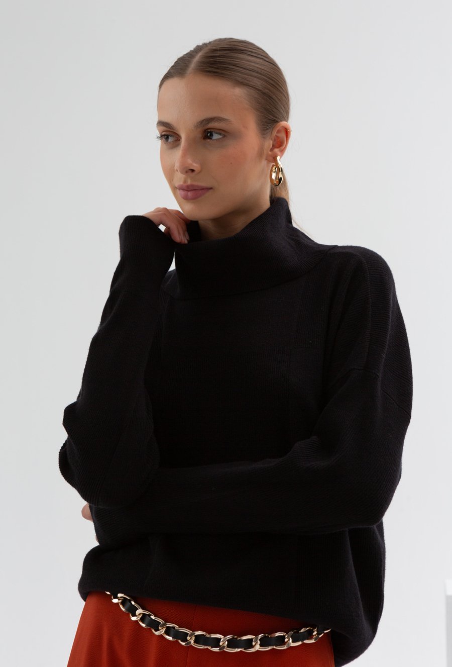 Czarny golf w delikatny prążek
