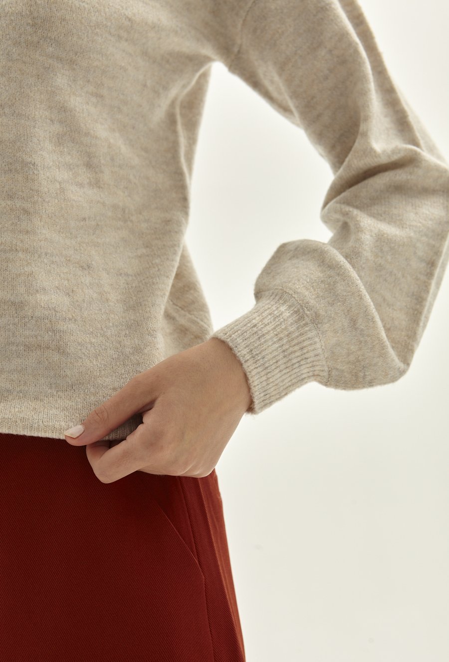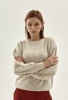 Sweter w pięknym beżowym odcieniu, został wykonany z miękkiej, przyjemnej dzianiny. Ma delikatnie oversize'owy fason , obniżona linie ramion to czyni go bardzo uniwersalnym. Sweter sprawdzi się do codziennych do tego będzie nas ogrzewał clą jesień i zimę. Modelka na zdjęciu ma 175 cm wzrostu i prezentuje rozmiar S.