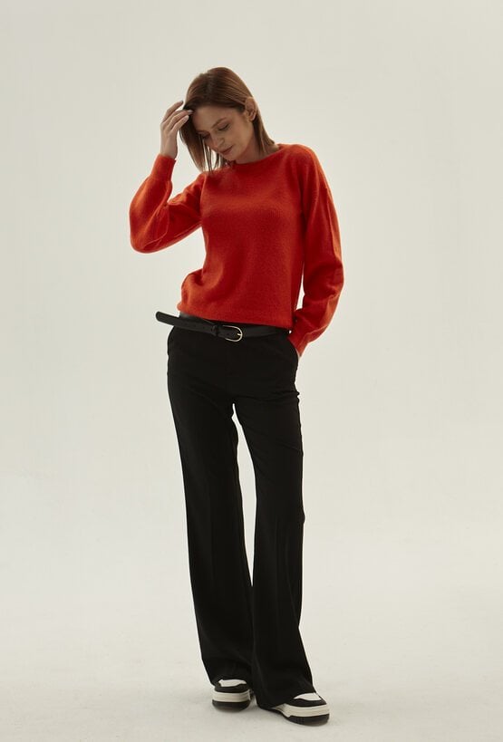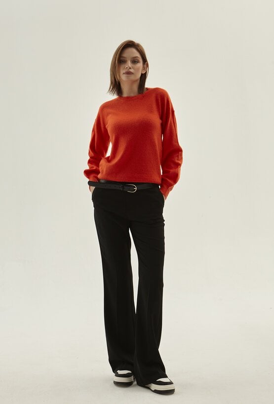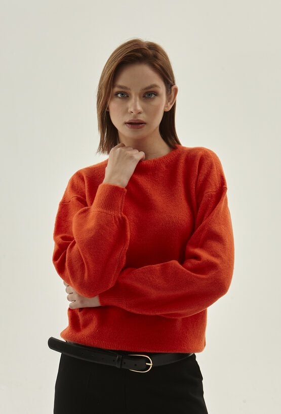 Sweter w pięknym pomarańczowym kolorze, został wykonany z miękkiej, przyjemnej dzianiny. Ma delikatnie oversize'owy fason , obniżona linie ramion to czyni go bardzo uniwersalnym. Sweter sprawdzi się do codziennych do tego będzie nas ogrzewał clą jesień i zimę. Modelka na zdjęciu ma 175 cm wzrostu i prezentuje rozmiar S.