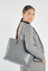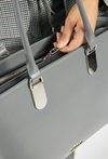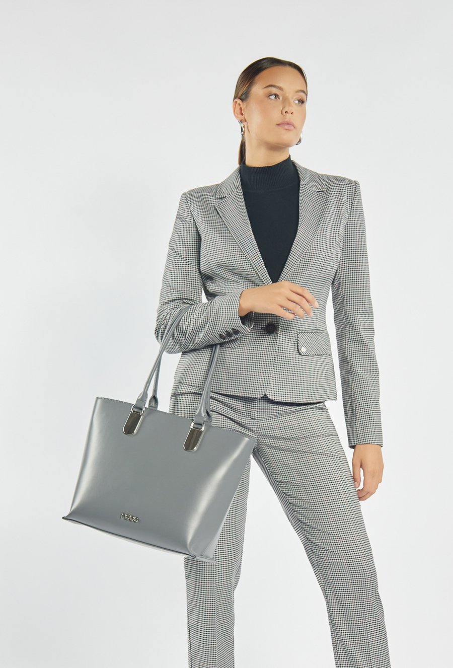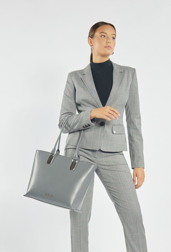 Stylowa torba damska o wymiarach: 42 cm x 29 cm 14 cm. Wnętrze torby wykończone jest jasną, logowaną podszewką, która nadaje całości elegancji i lekkości. Dodatkowe kieszonki wewnętrzne zwiększają funkcjonalność, pomagając w utrzymaniu porządku. Torba zawieszona jest na wygodnych rączkach i doskonale sprawdzi się w codziennych stylizacjach. Torbę należy przechowywać w dołączonym woreczku.