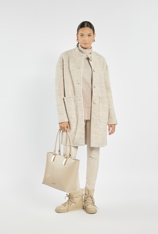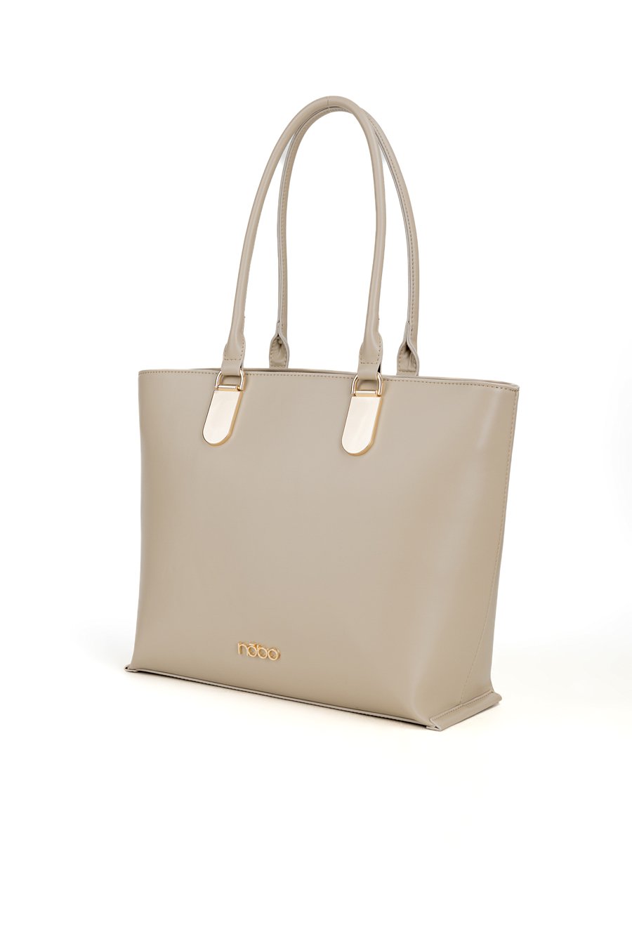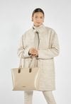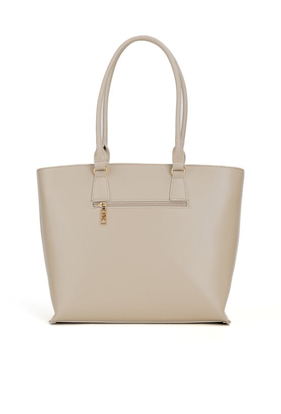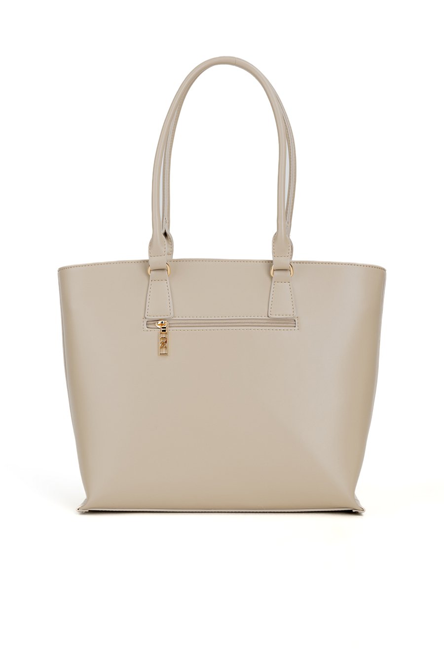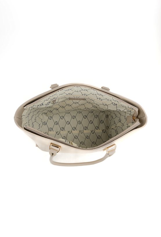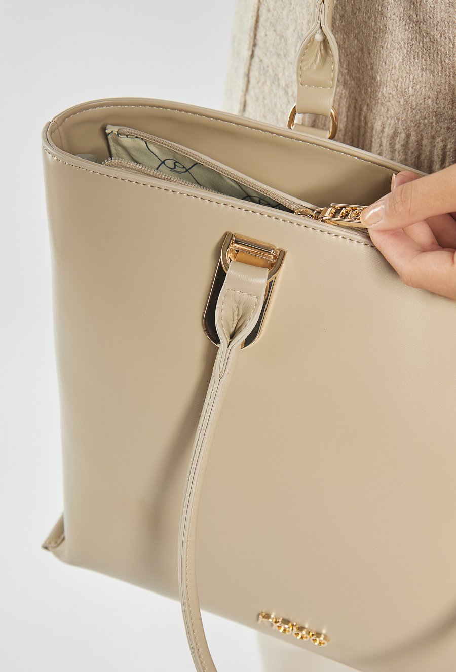 Stylowa torba damska o wymiarach: 42 cm x 29 cm 14 cm. Wnętrze torby wykończone jest jasną, logowaną podszewką, która nadaje całości elegancji i lekkości. Dodatkowe kieszonki wewnętrzne zwiększają funkcjonalność, pomagając w utrzymaniu porządku. Torba zawieszona jest na wygodnych rączkach i doskonale sprawdzi się w codziennych stylizacjach. Torbę należy przechowywać w dołączonym woreczku.