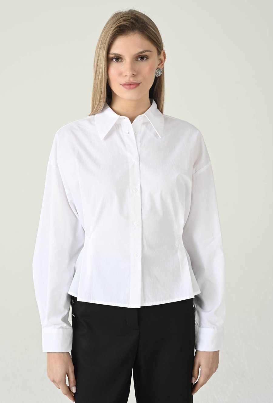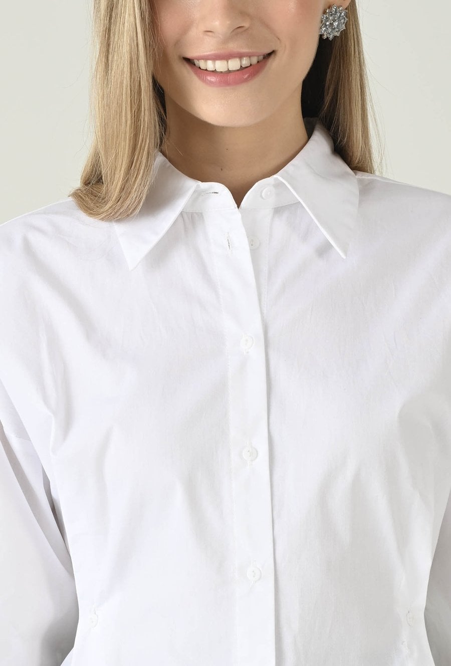Ponadczasowa biała koszula, która stanowi perfekcyjną bazę do eleganckich i codziennych stylizacji. Klasyczny kołnierzyk oraz zapięcie na guziki podkreślają jej uniwersalny charakter, a długie rękawy zakończone mankietami dodają całości szyku. Starannie dopracowany fason dobrze układa się na sylwetce i zapewnia komfort noszenia przez cały dzień. Świetnie prezentuje się w zestawieniu z garniturem, spodniami materiałowymi lub jeansami – sprawdzi się do biura, na spotkania i ważniejsze wyjścia.