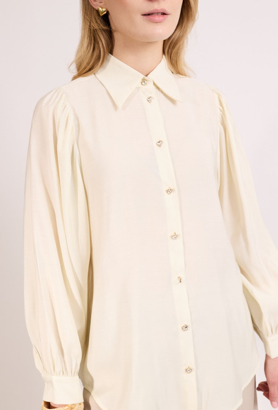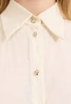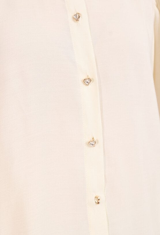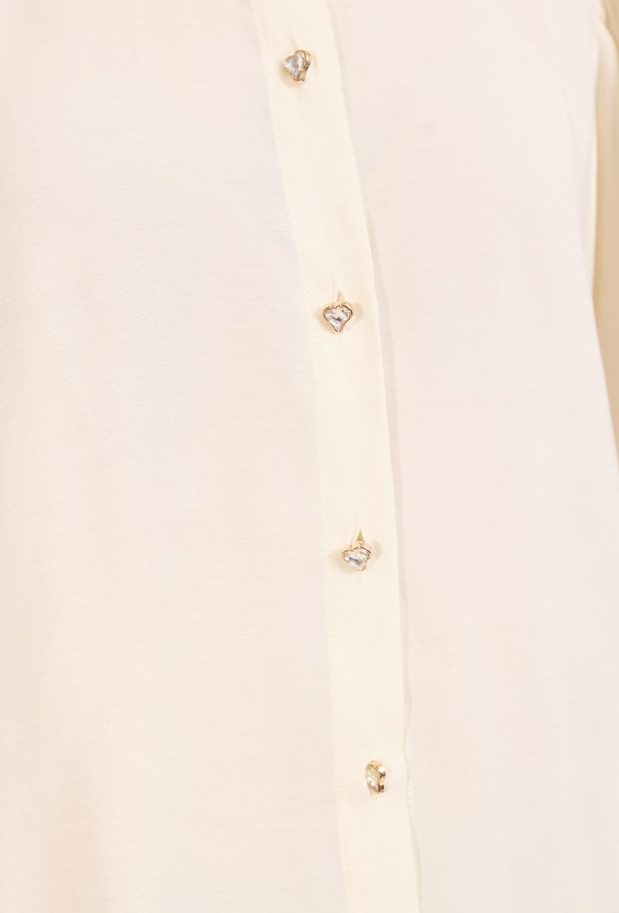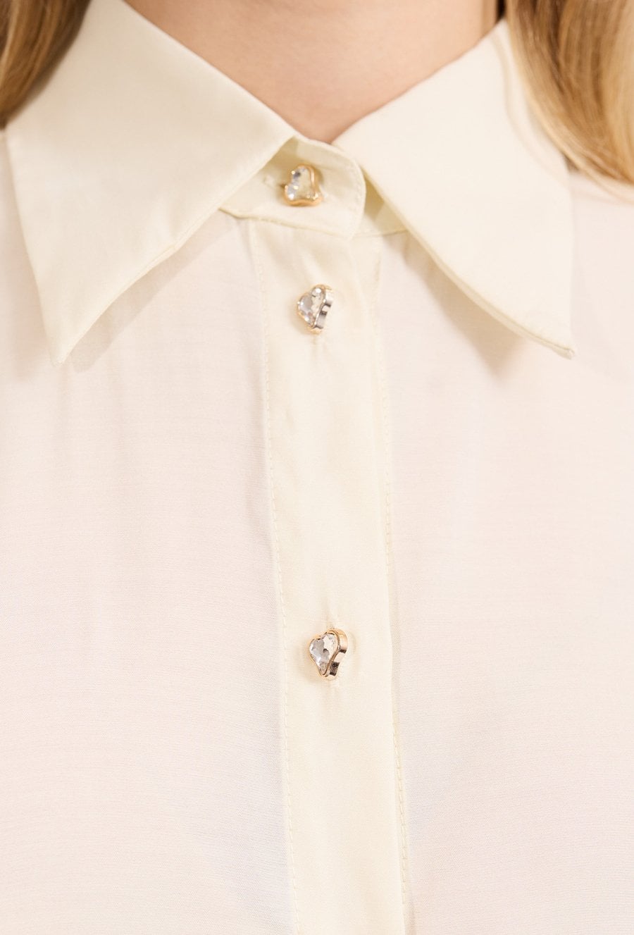 Elegancka koszula damska o klasycznym kroju z długim rękawem. Model zapinany na guziki z kołnierzykiem, ozdobiony subtelnymi detalami, które nadają stylizacji kobiecego charakteru. Koszula doskonale sprawdzi się w eleganckich i biznesowych stylizacjach, do pracy oraz na spotkania. Modelka na zdjęciu ma 177 cm wzrostu i prezentuje rozmiar 36.